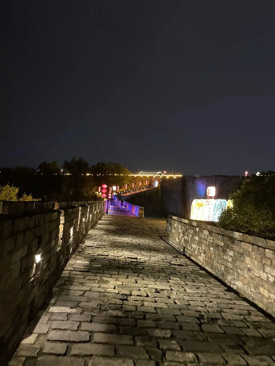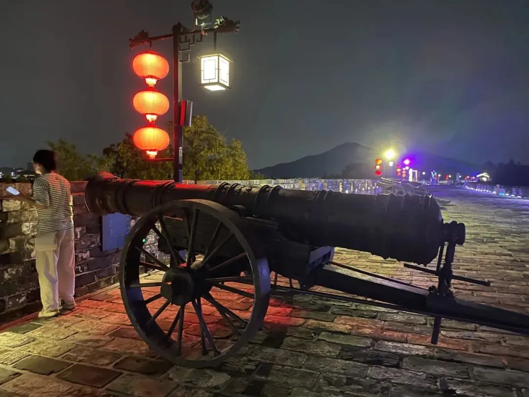 我们是夜游城墙,城墙上的人比较少,上面有灯不用担心看不见,在上面可以看见玄武湖夜景,在中间还会讲诉城楼历史小故事的小展馆,如果有带小孩的话,应该会对上面的大炮感兴趣。