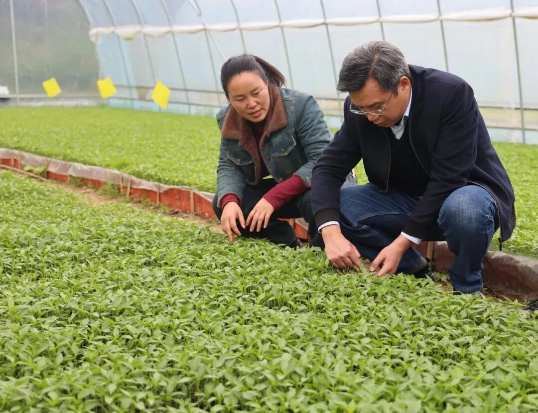 在龙山镇大塘村,调研组实地察看辣椒育苗情况,重点了解出苗率、病虫害防控及育苗流程落实情况,并针对薄弱环节现场提出指导建议。
