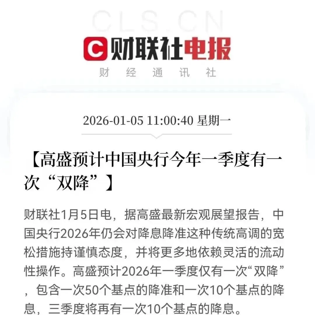 高盛等机构预计,一季度央行或有“双降”动作(降准+降息)。
