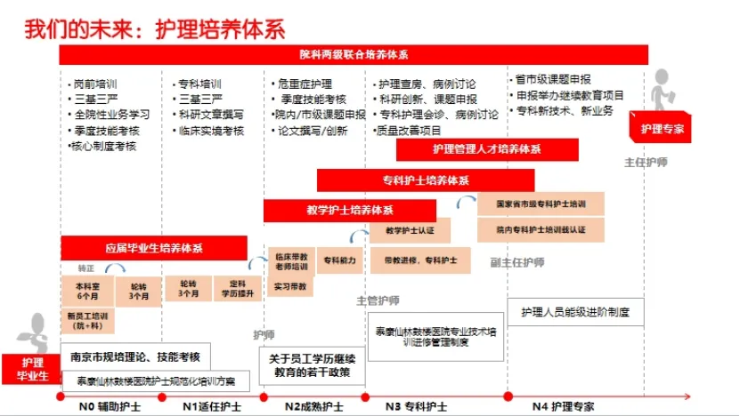 我院拥有一支年轻、热情、充满朝气和较高专业素养的护理队伍。护理部高度重视人才梯队建设,培养省市级以上专科护理人才近百人,通过不断完善年轻护士规范化培训、组织护理骨干外送进修、选拔骨干参加专科护士培养、开展临床带教老师培训及护理管理储备人才培养等一系列人才发展项目,成功挖掘并培养了一大批青年骨干人才。打造老年护理、抗衰护理等优势专科护理,重点发展康复护理、安宁疗护等,形成结构合理、方向清晰的学科布局。