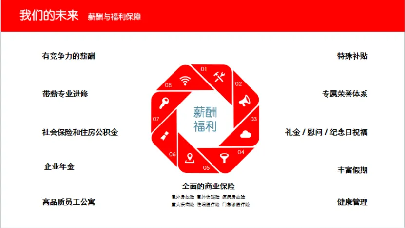 我们提供全方位的薪酬福利体系:不仅有有竞争力的薪酬待遇与企业年金加持,更配备全面的商业保险与五险一金筑牢后盾。支持带薪专业进修助力职业发展,提供员工公寓与健康管理守护生活。更有专属荣誉体系、丰富假期与节日慰问,让每一份付出都被看见,让工作有温度、有归属感。