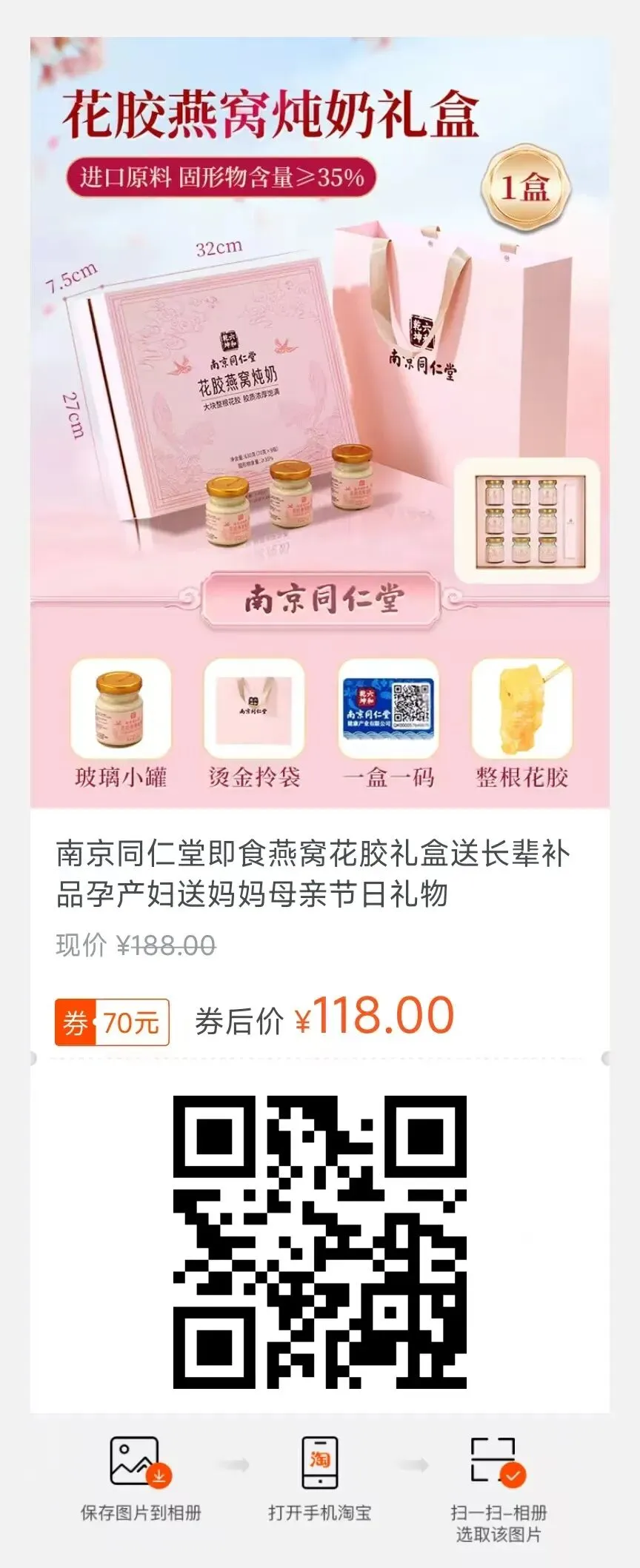 南京同仁堂即食燕窝花胶礼盒送长辈补品孕产妇送妈妈母亲节日礼物【包邮】
