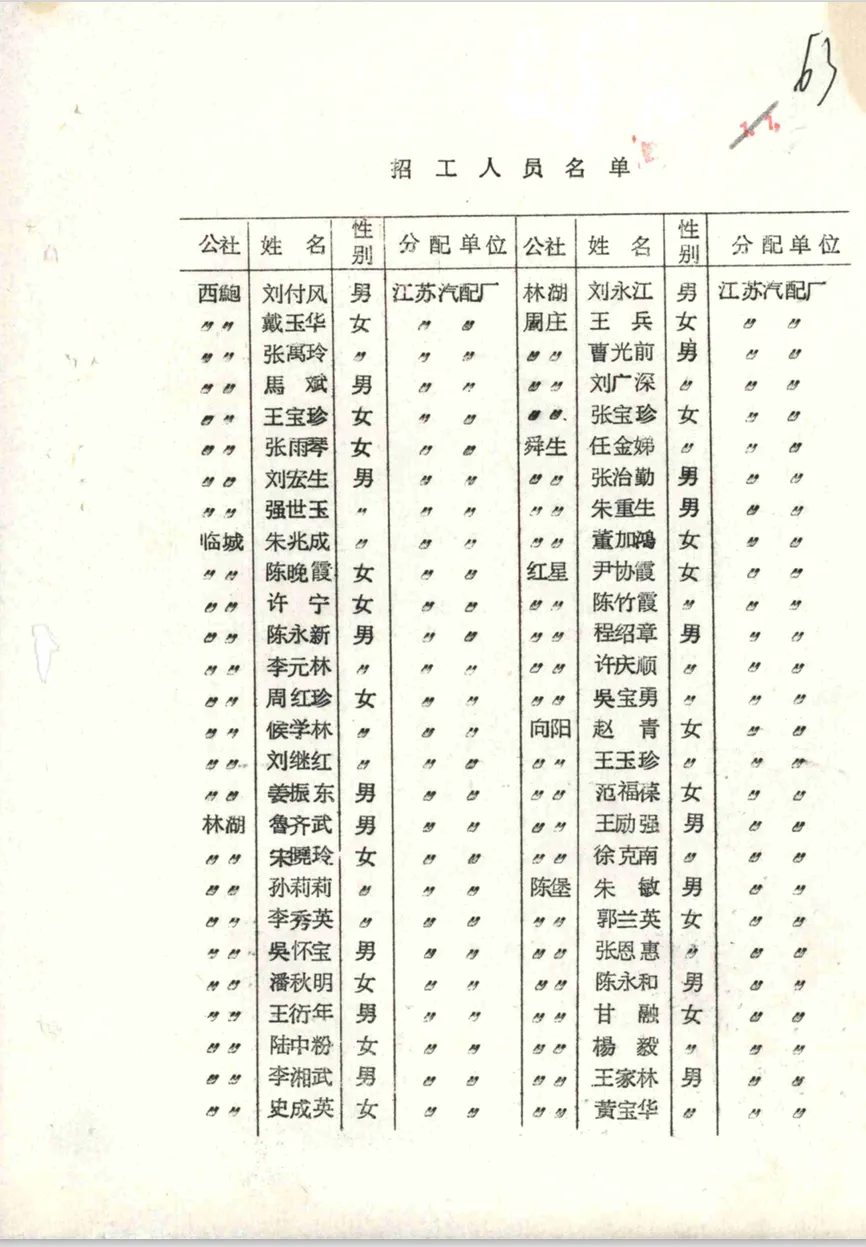 此份招工表名单中,有插队在蒋东三队的知青郭兰英。