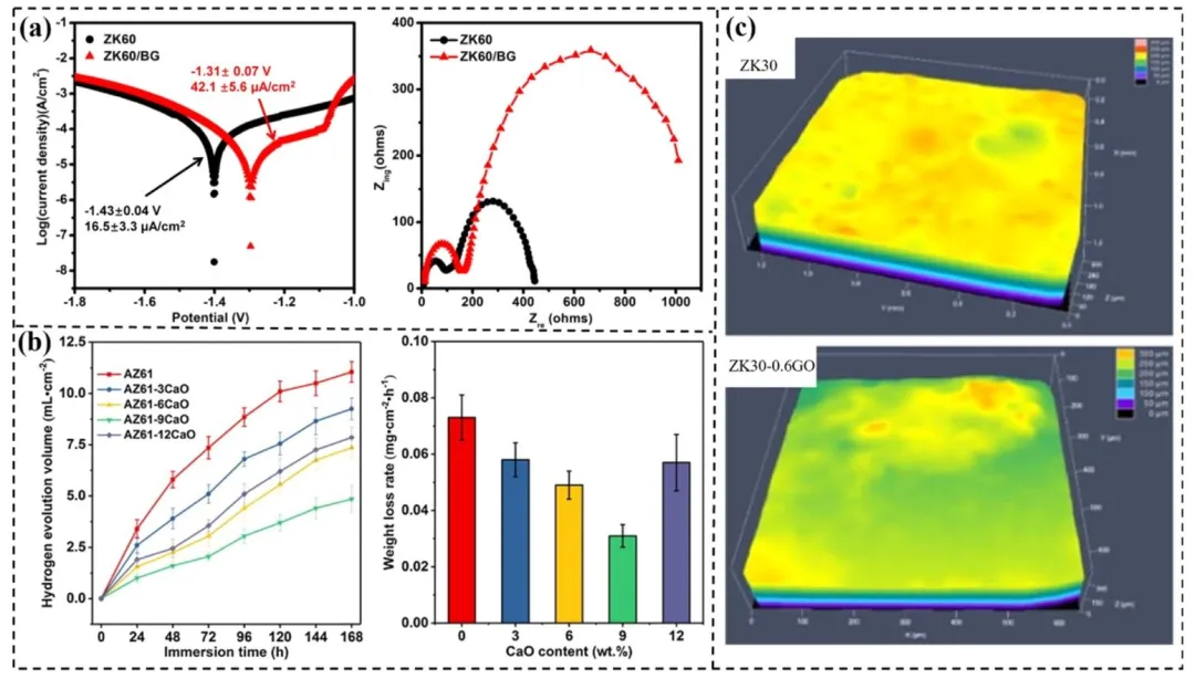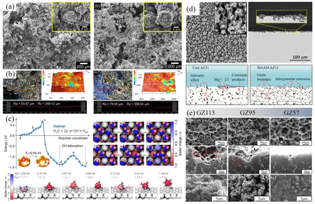 - 腐蚀性能:微观结构异质性有助于提升 WA-DED 镁合金耐腐蚀性,稀土元素通过形成稳定氧化膜和连续分布第二相改善耐腐蚀性;LPBF 构件的孔隙、残余应力等因素可能加剧腐蚀,需通过工艺参数调整和后处理优化。