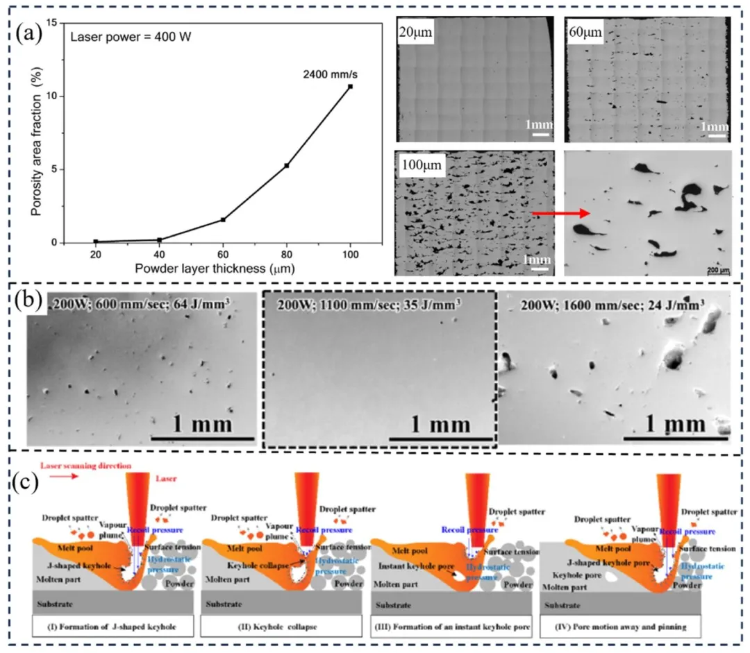 - 缺陷类型与成因熔基增材制造常见缺陷包括溅射、孔隙、元素损失、球化、热裂纹等,与粉末特性、能量输入、路径规划及工艺参数相关;SSAM 存在钩形缺陷、虚焊、多余飞边等问题。