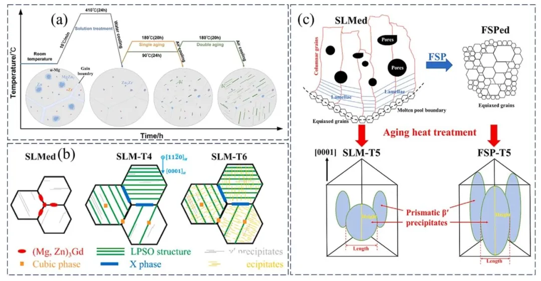 - 增材制造的多热循环和快速凝固特性导致镁合金构件微观结构异质性和残余应力,适当的辅助工艺(如机械加工、物理场)和后热处理可进一步细化晶粒、提高材料致密度、改善构件性能;Mg-RE 体系在增材制造及后续热处理过程中的相演变极为复杂,金属间化合物、LPSO 相和沉淀相的尺寸、分布及与基体的界面关系显著影响合金力学和腐蚀性能。
