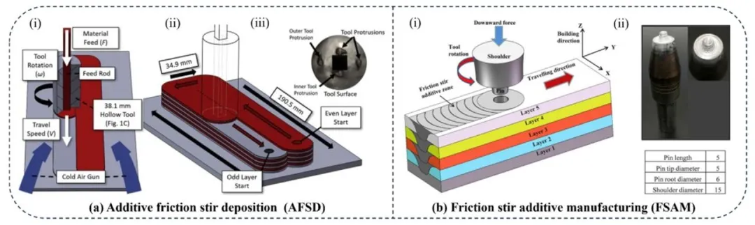- 固态增材制造(SSAM)基于搅拌摩擦工程(FSE),包括摩擦搅拌增材制造(FSAM)和增材摩擦搅拌沉积(AFSD),可避免凝固缺陷,制备致密微观结构、低残余应力构件,在功能梯度材料和层状复合材料制备中具有独特潜力,但受工具接触加工限制,复杂曲面成型适应性有限。