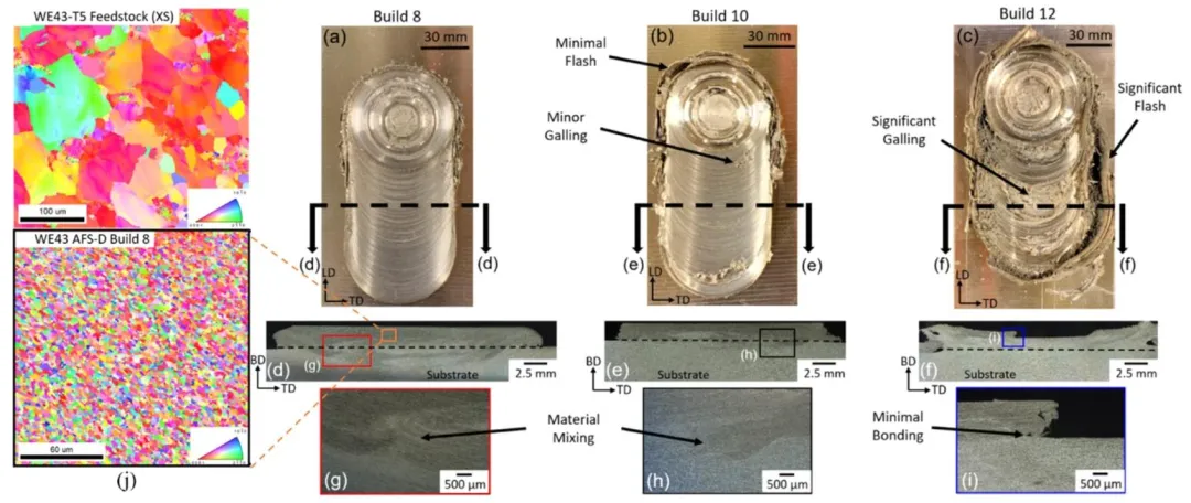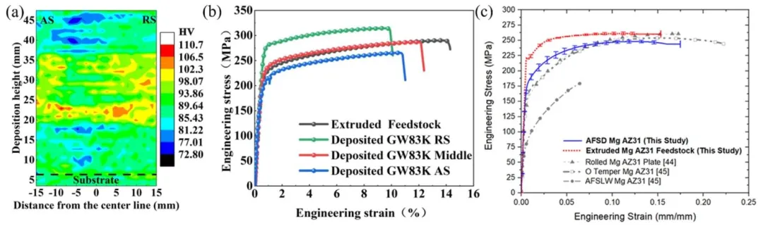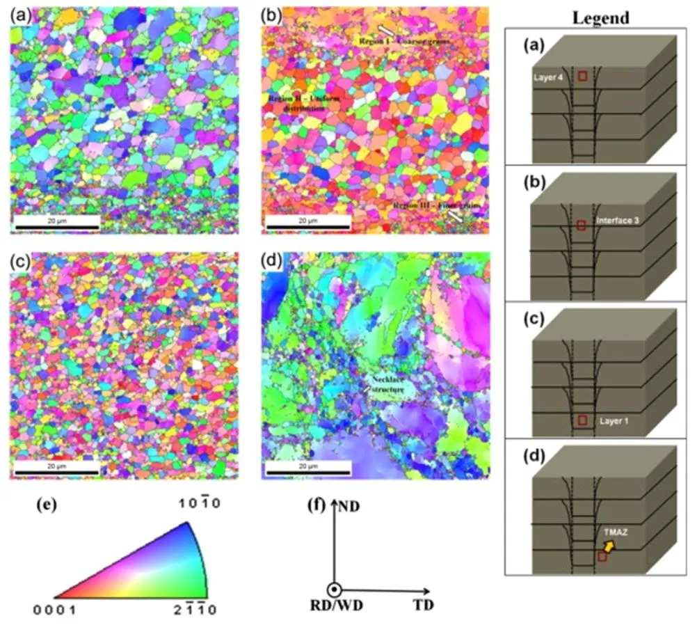 - AFSD 和 FSAM 均涉及高温摩擦热和剧烈塑性变形,但在工具设计和加工策略上存在显著差异;沉积构件不同区域微观结构演变归因于局部温度和应变差异及每层经历的热循环;连续动态再结晶(CDRX)被认为是镁合金 SSAM 工艺晶粒细化的主要机制;通过优化工艺参数、选择工具形状和采用多道次操作,可克服 SSAM 镁合金缺陷,实现构件各向同性力学性能。