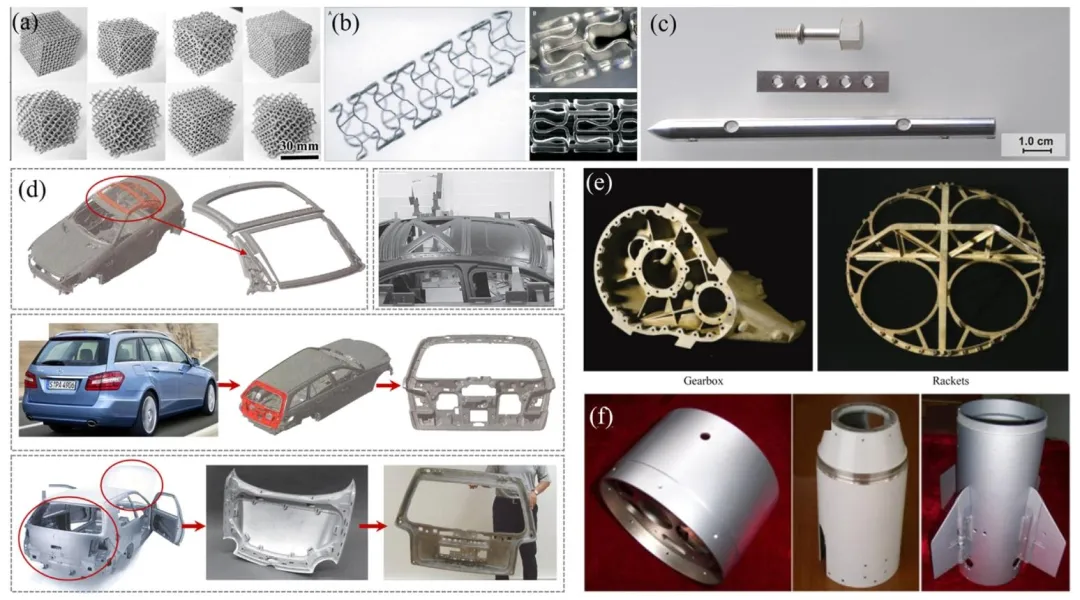 - 激光粉末床熔融(LPBF)具备高精度(光斑直径 < 60μm)和高冷却速率(10⁶~10⁸K/s),适合制造复杂精密结构构件,在航空航天和生物医学领域应用广泛,可制备利于细胞增殖和骨再生的三维互连多孔医用镁支架,但镁合金低熔点、高蒸气压等特性易导致蒸发、球化、孔隙等缺陷。