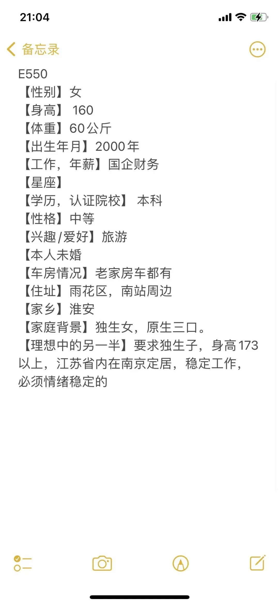 南京相亲丨95年,女,身高163,南京理工大学毕业,央企工作,年薪10万左右,南京有房有车