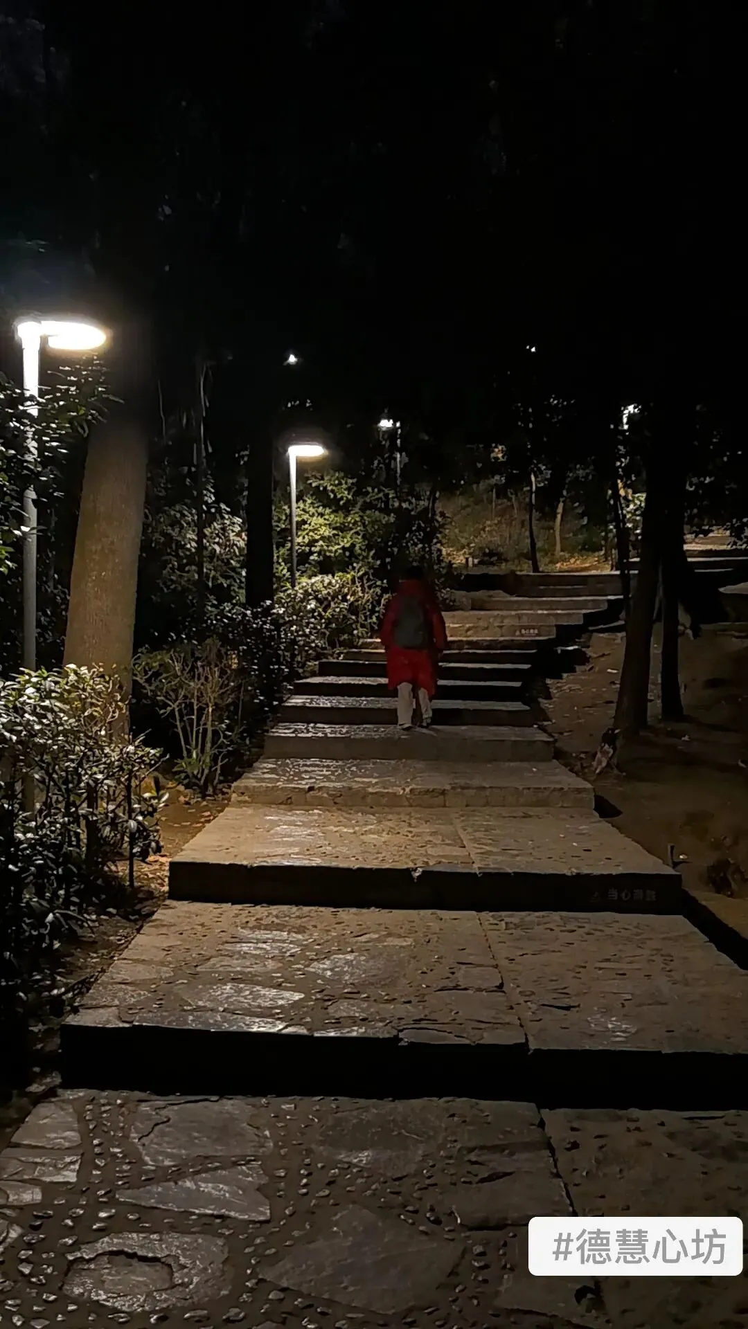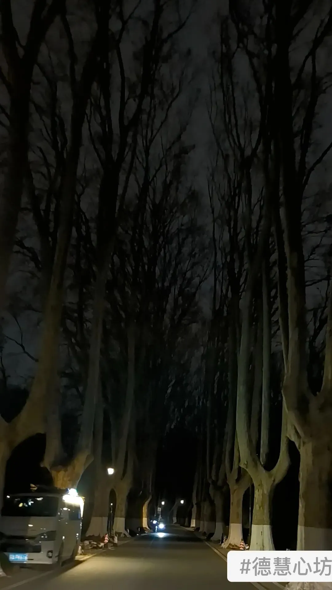晚上九点多,跟着女儿的脚步,我们走入漆黑的梧桐大道。白日的喧嚣散尽,只剩下路灯与树影,安静得能听见自己的脚步声,幽深静谧,像一条通往旧时光的路,也让人不由得想到景区的历史渊源。