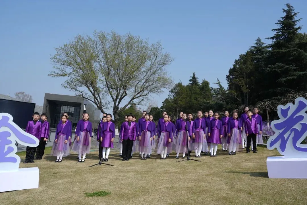 紫金草童声合唱团唱响《紫金草向阳生长》,拉开活动序幕。这支平均年龄仅10岁的队伍,用纯净的音符诉说孩童对和平的向往,也让在场每一位志愿者感受到和平力量生生不息。