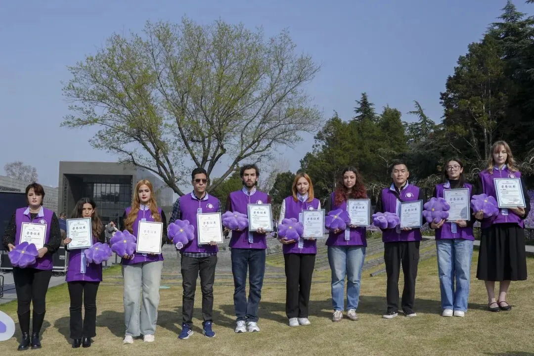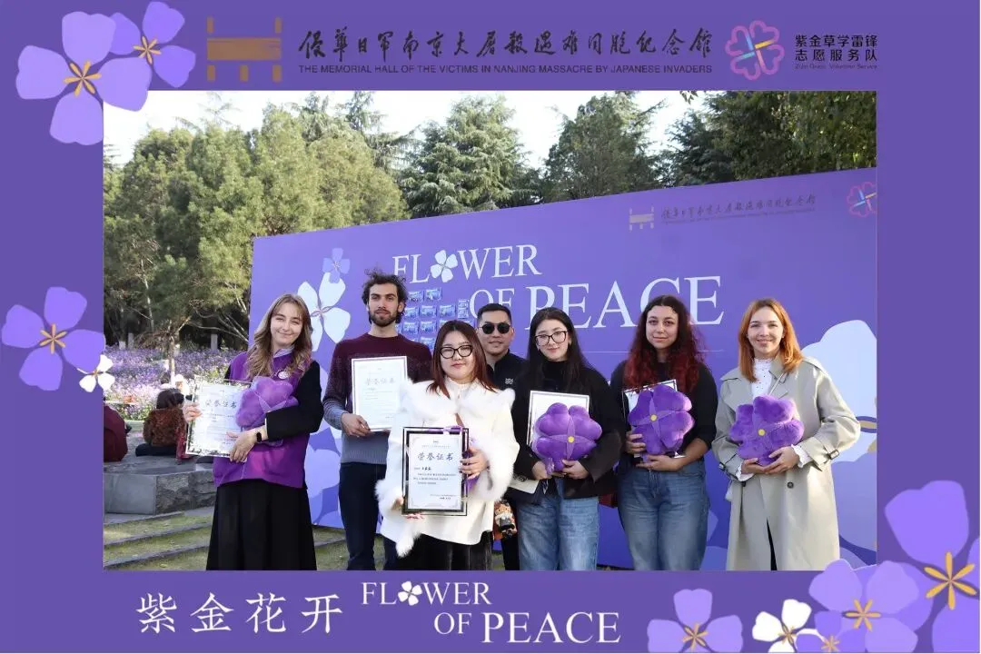 跨越山海,为和平前行。来自不同国度的国际青年,凭借多语种优势与跨文化视角,让南京的和平故事打破语言与地域的壁垒。塔吉克斯坦的彩虹、俄罗斯的丽莎等国际志愿者荣获“紫金草优秀国际志愿者”称号。