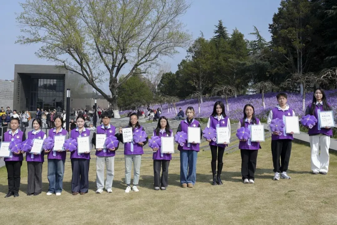 纪念馆志愿服务队伍中,一批特色团队用专业与坚守,让志愿服务更有温度、更有力量。纪念馆为表现突出的团队颁发“紫金草优秀志愿服务团队”称号。