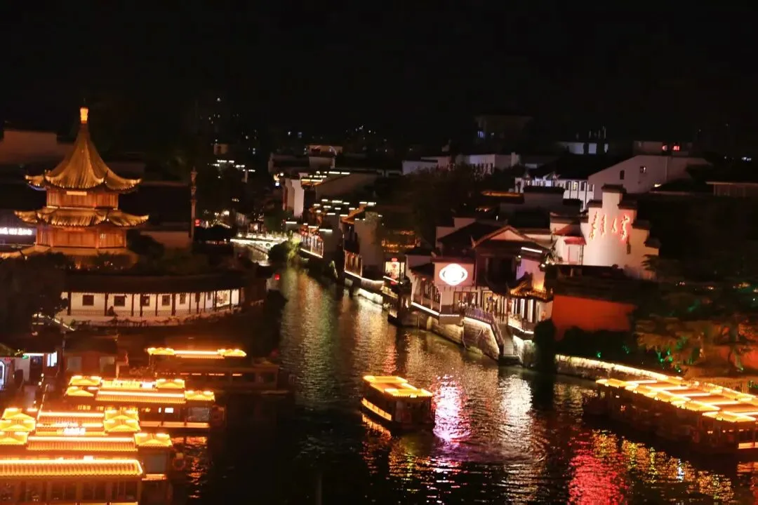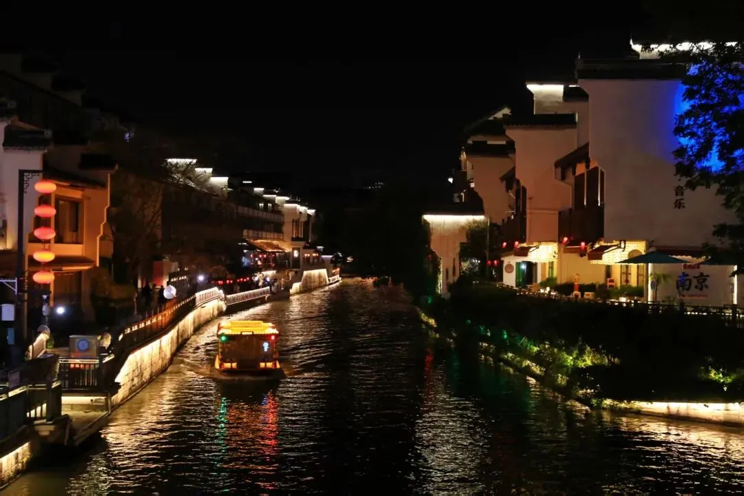 自泮池码头出发,途经白鹭洲、七彩水街、东水关、复成桥……是南京夜游最经典的路线,十里秦淮,桨声灯影,画舫之上,晚风吹拂。乘船夜游,40分钟领略十里秦淮最繁华的夜色,打开独属秦淮的浪漫。