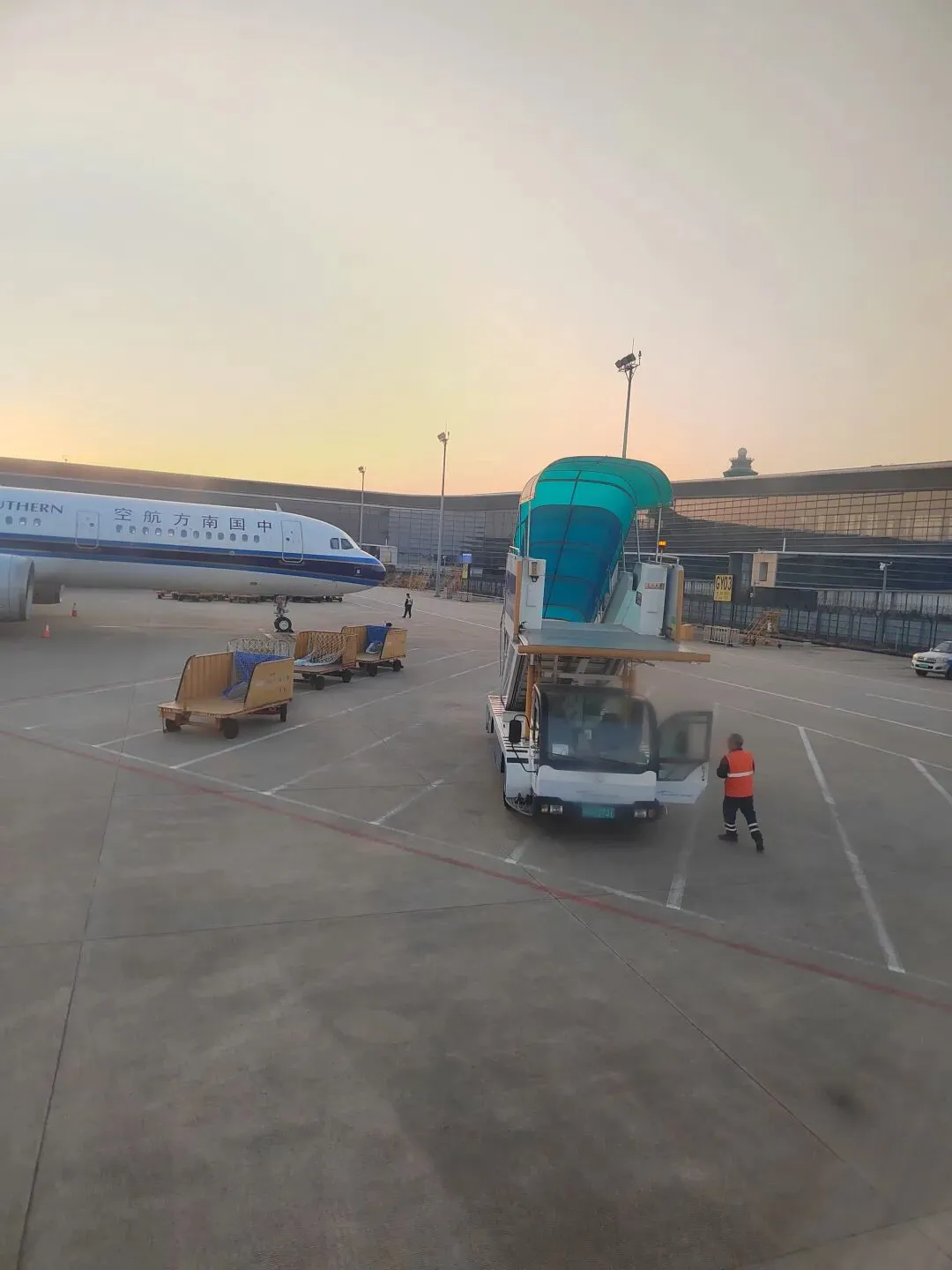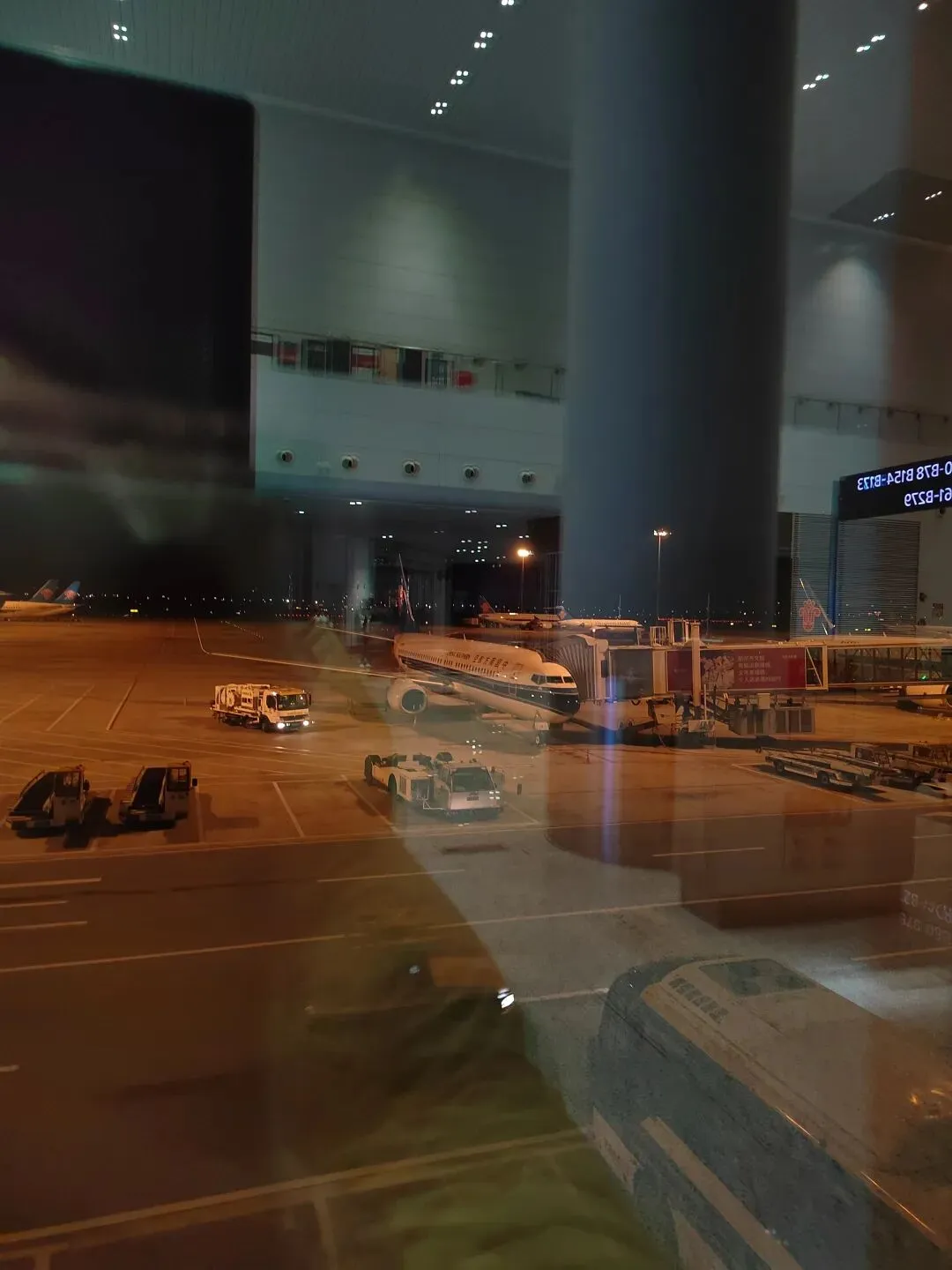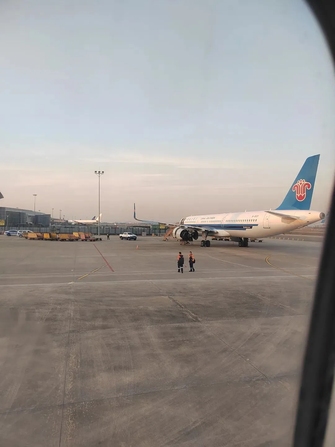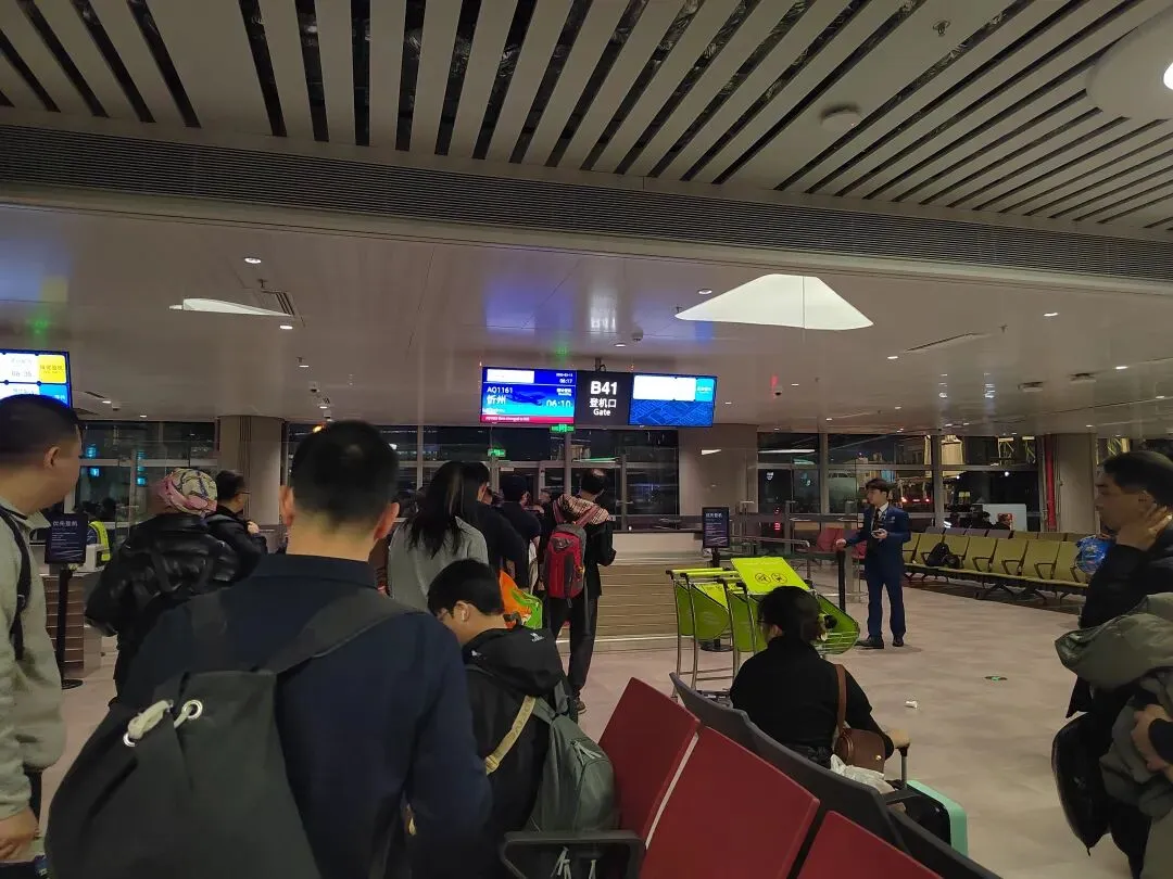 在机场走了很久才到登机口,而且要坐车去登机,由于在地面那层,我还以为恍惚回到了大学年代,到车站搭车的日子,也是要撕那张车票,现在是撕登机牌,那个候机厅有点像芳村那里的候车厅。