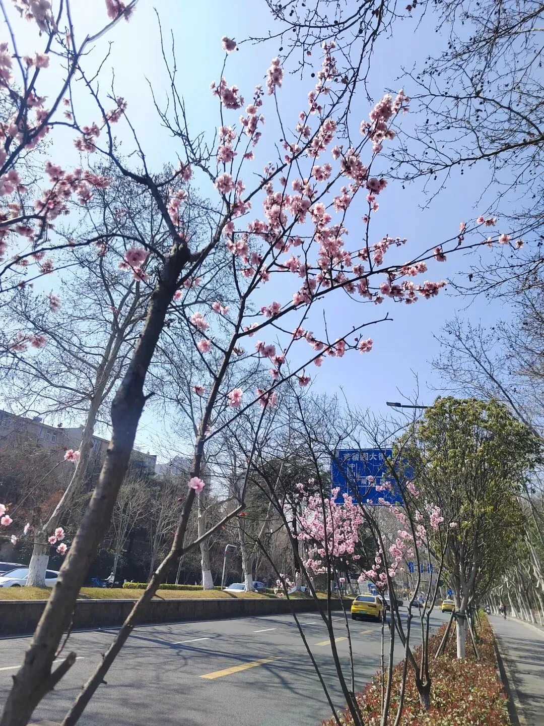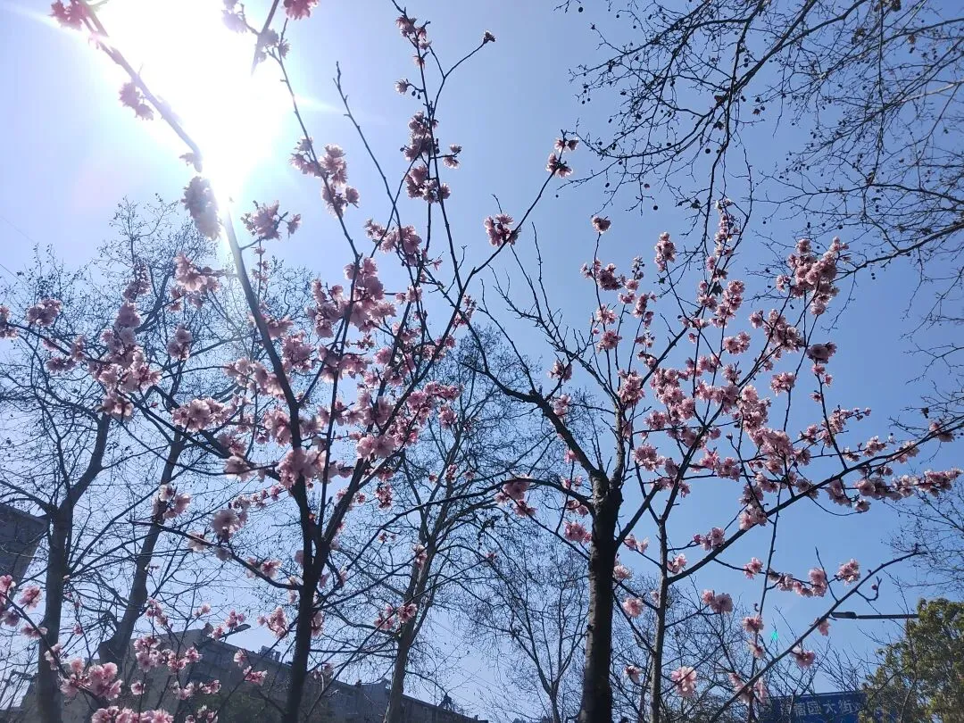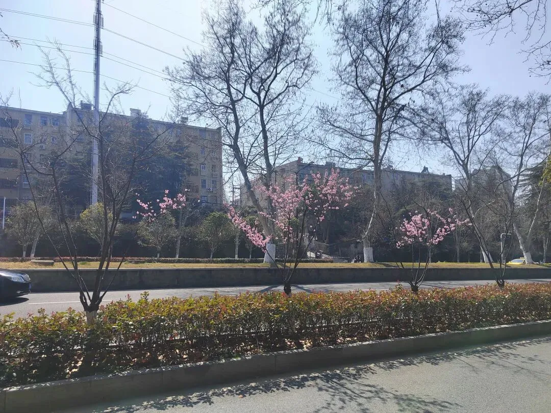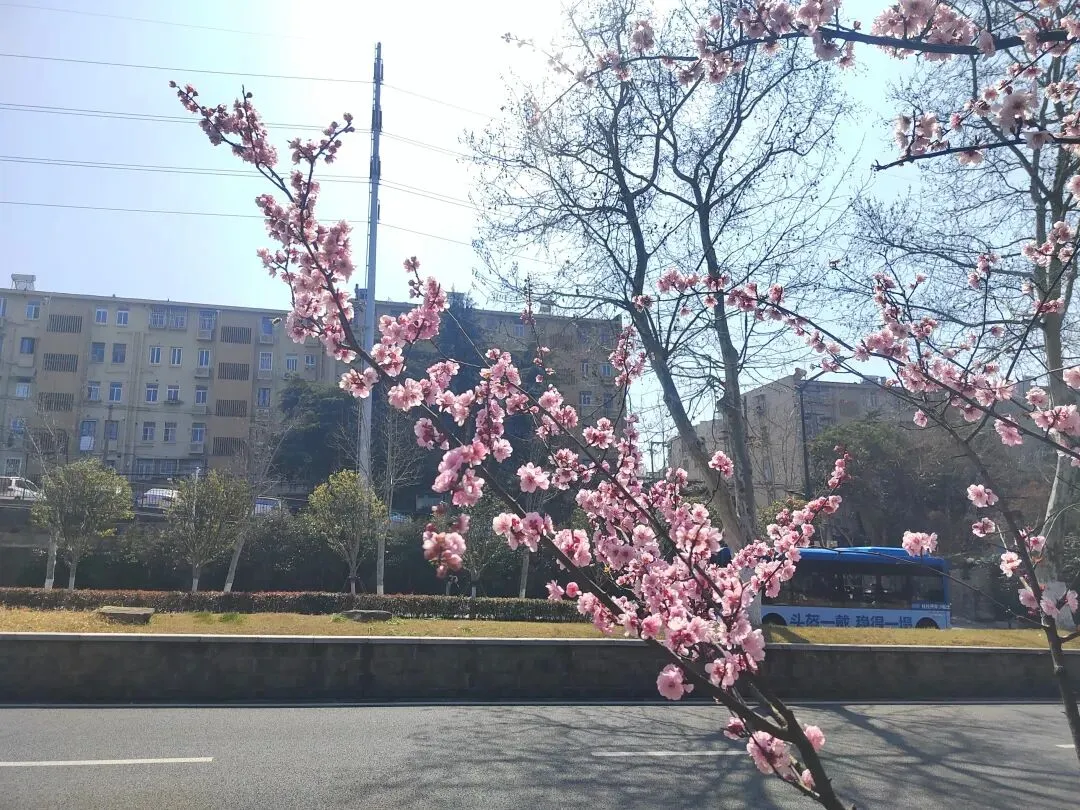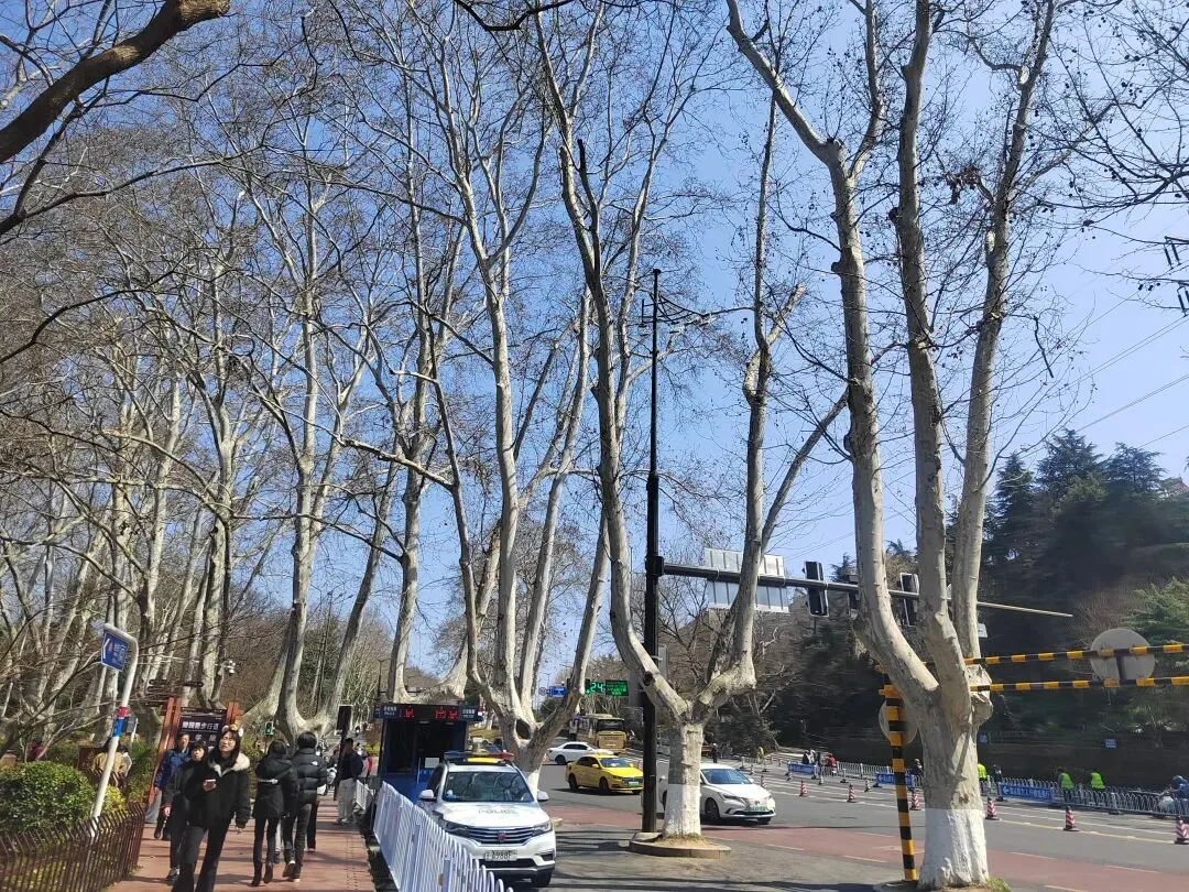 然后才搭地铁去酒店,一看行程,四十公里,转了差不多两个小时,一出地铁口,一股凉风扑面而来,毕竟是两个地区的温差,但是我在明孝陵边上的这条路,感受到了江南春色的烂漫,路边的粉色小花很多都开了,一簇一簇的粉色,特别美,我也不知道是什么花,后来才知道是樱花。酒店也是非常好,免费帮我们升级了房型,楼下几个店都是吃的,在某个老字号我买了一个荠菜包,令我回味无穷,还有14元一包的蝴蝶酥,我觉得其实比上海那个排队饭店买的网红还要香脆,离明孝陵就是一个路口的距离。