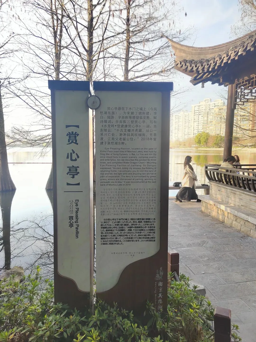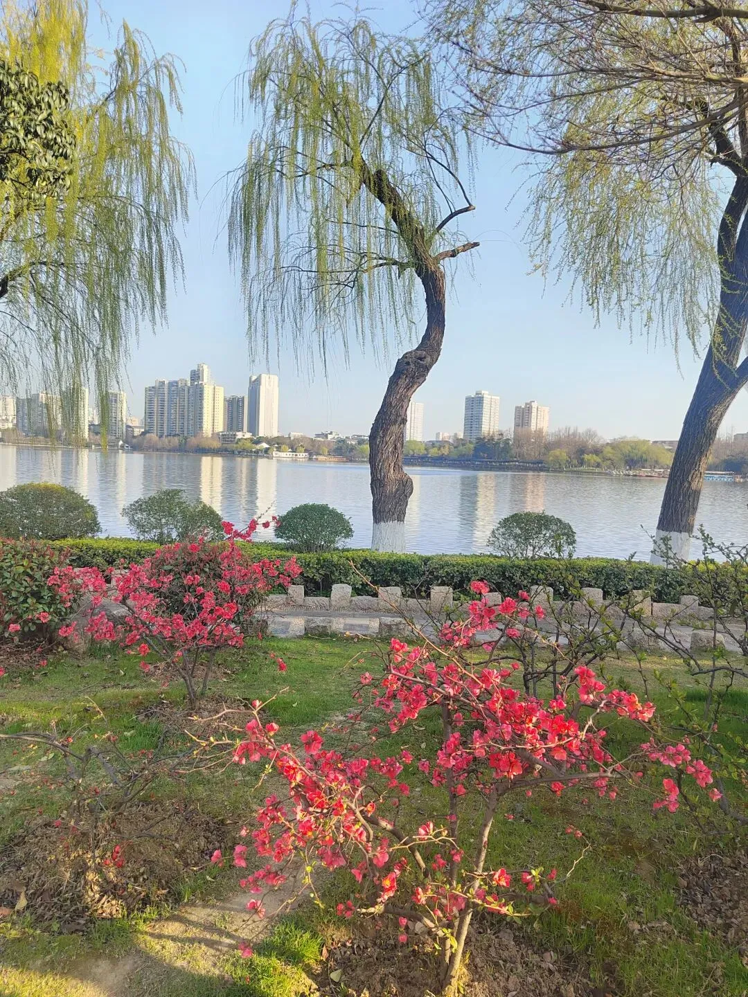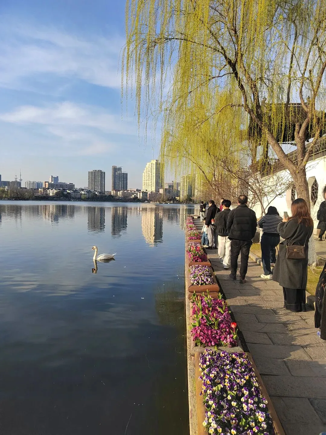 下午本来我想去玄武湖,鸡鸣寺这些开满了花的地方看三月的江南有多美,但是某书上说还没开花,倒是刚刚地铁上经过的一个叫做莫愁湖的地方海棠花已经盛放,于是我们就去了。当其实,海棠花也没有开了多少,但是这个公园还是很美的,有天鹅,有花,有垂柳,而且很大,其他出口还非常隐蔽,我们逛了一大圈又要绕回原路出去,这样一个下午就这样过了, 根本去不了其他地方。