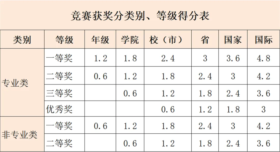 1.评定时需获奖者提供荣誉证书原件。集体参赛,降一级加分,即团体参加的国家级一等奖按照省级一等奖加分,团体参加的学院级三等奖不加分。