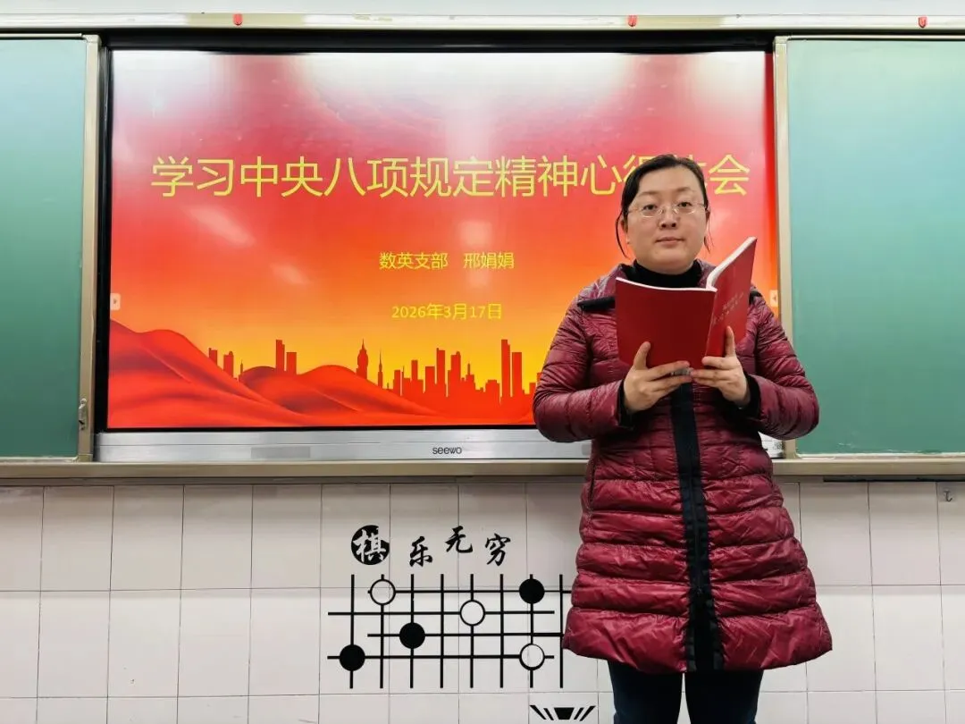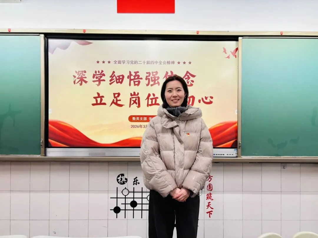 首先,党员教师邢娟娟、张璇老师进行学习分享。邢娟娟老师分享了学习贯彻党的二十届四中全会精神的心得,她表示将切实转变思想、严守高标准,工作中求真务实做好教学与家校沟通,严守师德师风、廉洁从教,厉行勤俭节约改进作风,以实际行动践行党员教师的责任与担当。张璇老师则结合学习贯彻党的二十届四中全会精神谈体会,她深刻领会党的二十届四中全会精神的要义,表示自己将坚守育人初心,注重学科育人,厚植学生家国情怀,用心培养全面发展的时代新人。