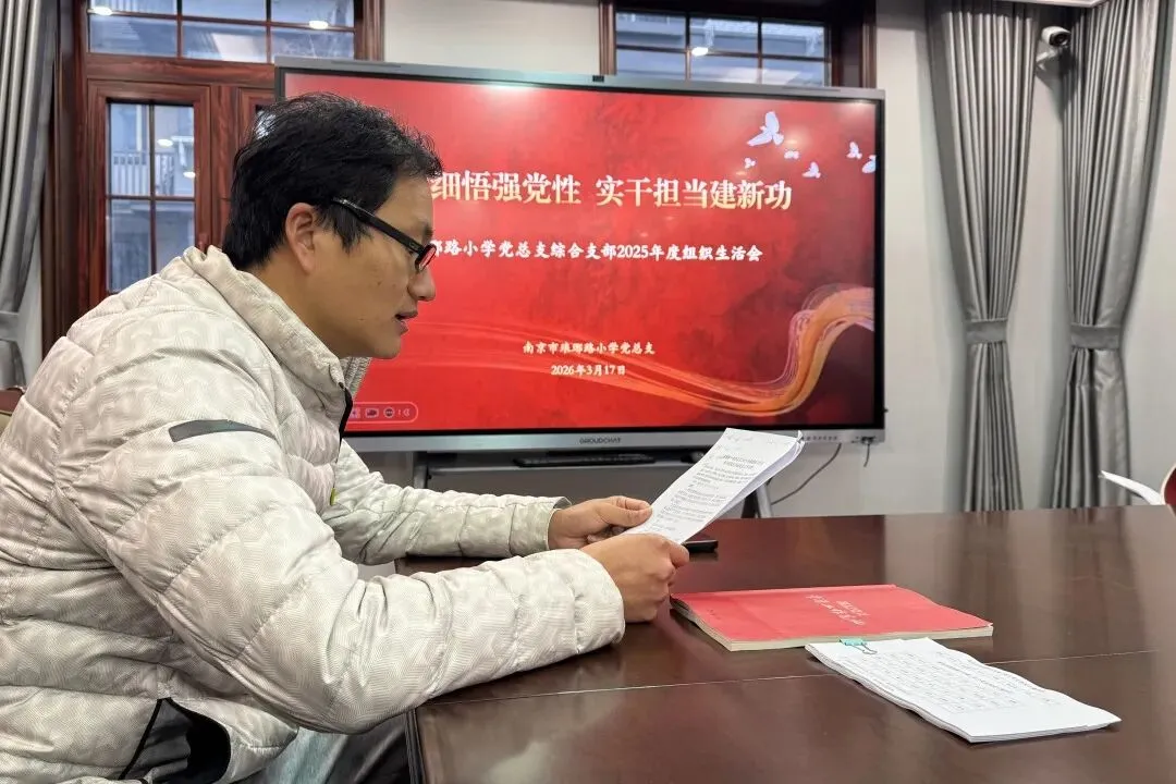 为深入学习贯彻习近平新时代中国特色社会主义思想,全面落实党的二十届四中全会精神,锲而不舍落实中央八项规定精神,2026年3月17日下午,南京市琅琊路小学党总支所属语文、数英、综合三个支部以“深学细悟强党性,实干担当建新功”为主题,分别进行了2025年度组织生活会和民主评议党员活动。