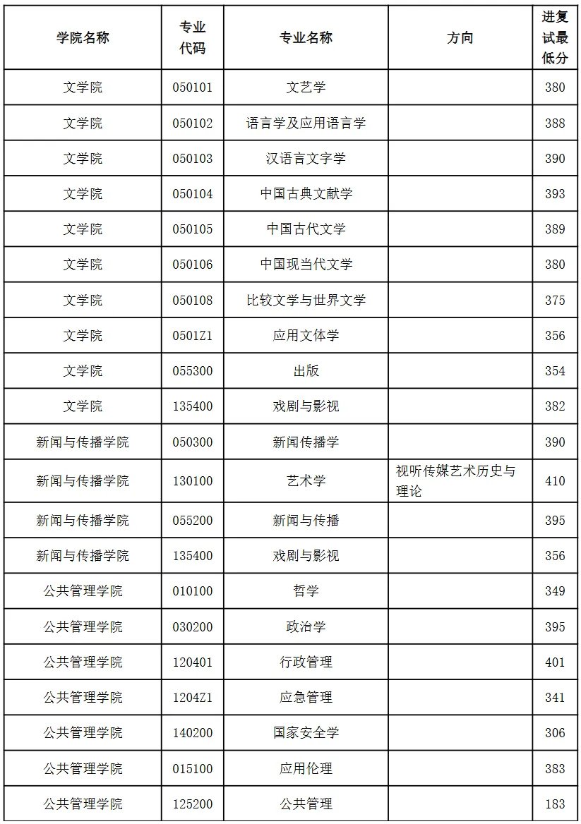 3.学校对考生进入复试的初试单科成绩要求,若无特殊说明,则按国家分数线A类考生单科要求执行。