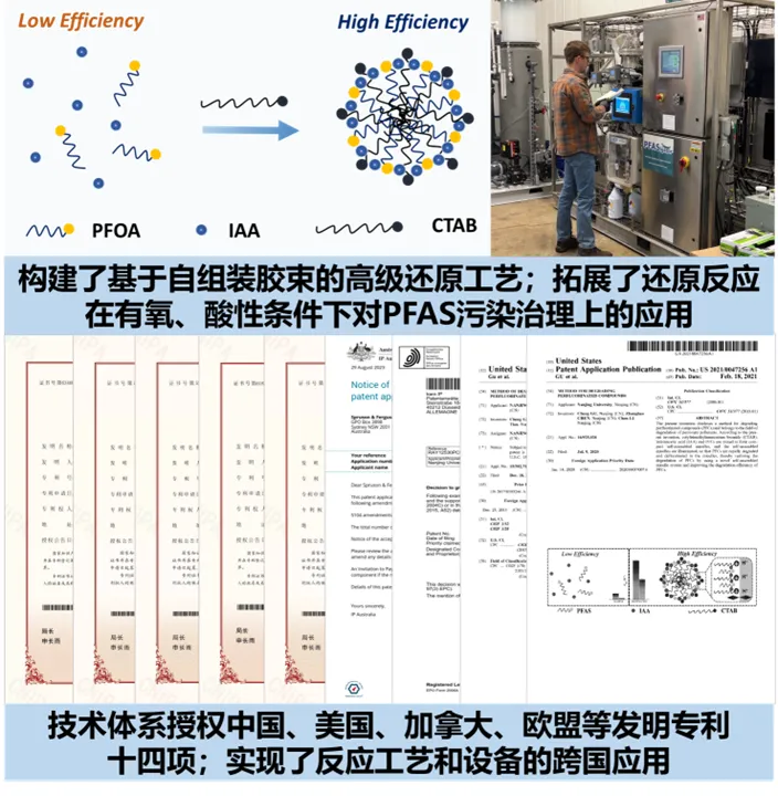 南京大学环境学院谷成教授,陈张浩助理教授团队针对有机氟化物(PFAS)污染治理难题,提出了“限域活性电子还原脱卤”策略,拓展了还原反应在有氧、酸性条件下的应用场景。该成果可实现对有机氟化物污染水体的修复,保护人类健康,被专家团队鉴定为国际领先水平,荣获了多项荣誉。团队委托专业机构精心进行专利布局,累计发明专利15项,其中在国外布局专利5项。转化中采用梯度付款、PCT国际申请及优先购买权等策略,实现风险收益平衡。成果推动了环保领域新质生产力国际化应用,为将我国科技成果推向国际提供了重要借鉴。