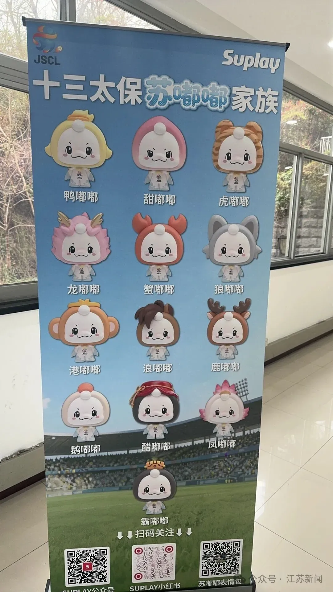在吉祥物的设计上,你永远可以相信“苏大强”。“苏嘟嘟”的主体形象来自江苏最具时代代表性的动物——江豚,它标志性的“微笑”传递出治愈感与生命力,饱满圆润的额头“显眼包”寓意智慧与灵动,同时展现敢打敢拼、自信昂扬的体育精神。此外,鳍部化用昆曲水袖,肩部倒置茉莉花瓣,足踏水波纹样,可谓“水韵江苏”文化自信的视觉符号。至于江苏13个城市各自的专属形象,就由“苏嘟嘟”去各地cosplay。乍一看,飞禽走兽不一而足:到南京变成“鸭嘟嘟“,到扬州变成“鹅嘟嘟”,到泰州变成“凤嘟嘟”,到常州变成‘龙嘟嘟’,到徐州变成“虎嘟嘟”,到南通变成“狼嘟嘟”,到盐城变成“鹿嘟嘟”,到连云港变成“猴嘟嘟”……对于其中的内涵关联,人们大都耳熟能详,譬如南京人爱吃盐水鸭,扬州人爱吃盐水鹅,泰州是凤城,常州是龙城,南通有狼山,盐城有麋鹿等等。网友们一时不解的是,徐州和虎究竟是什么渊源?有人说徐州是苏北五虎之首,也有人猜测和徐州汉画像石上的虎有关。记者从江苏省体育产业集团获悉的说法是:“虎嘟嘟”以徐州非遗与民俗符号“封侯虎”为设计灵魂,猛虎的造型和纹样寓意球队如瑞虎添翼,驰骋赛场,建功凯旋。再说“封侯虎”,它的由来则与汉高祖刘邦有关。刘邦建汉后大封诸侯,今徐州沛县籍多达20余位,安国镇更有“五里三诸侯”之说。受此影响,沛县人把对子孙成为虎将的愿望寄托在布老虎上,名曰“封侯虎”。这种布艺民俗传承至今,目前是徐州市级非物质文化遗产项目。