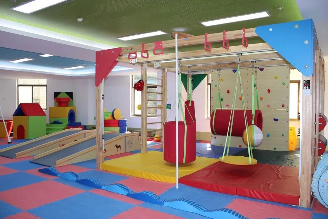 首先,延续专业评估优势,结合孩子的评估结果,由儿科康复医师、感统训练师组成专业团队,制定专属训练方案,避免“一刀切”;其次,训练课程贴合儿童兴趣,将枯燥的训练转化为游戏互动,比如通过荡秋千、蹦床刺激前庭觉,通过沙盘游戏、触觉刷改善触觉敏感,通过攀爬架、推重物强化本体觉,让孩子在玩耍中提升感统能力,配合度更高;最后,注重训练效果的延伸,训练师会根据孩子的训练情况,实时调整课程难度,同时为家长提供针对性指导,让训练更具连贯性。