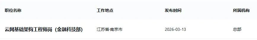 3月13日,南京证券金融科技部发布社招公告,涉人工智能算法、产品管理、平台架构师、云网基础架构工程师、安全管理工程师、Java(C++)开发等多个岗位。