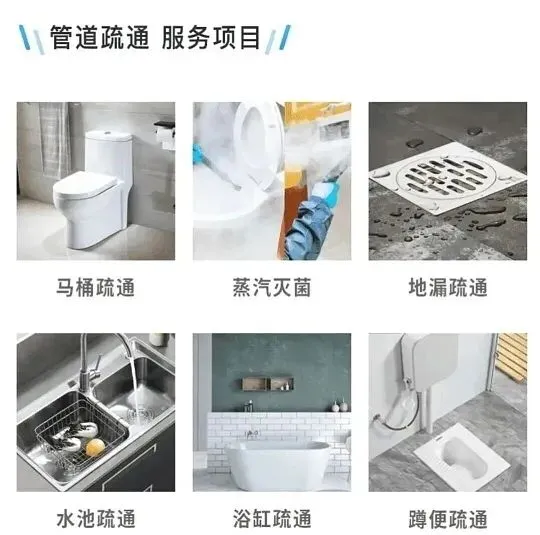 🚽 管道疏通:使用家用疏通机、大型疏通机等设备,专业疏通各类疑难下水道、卫生间、地漏、浴缸、菜池、阴沟、马桶、蹲坑等。