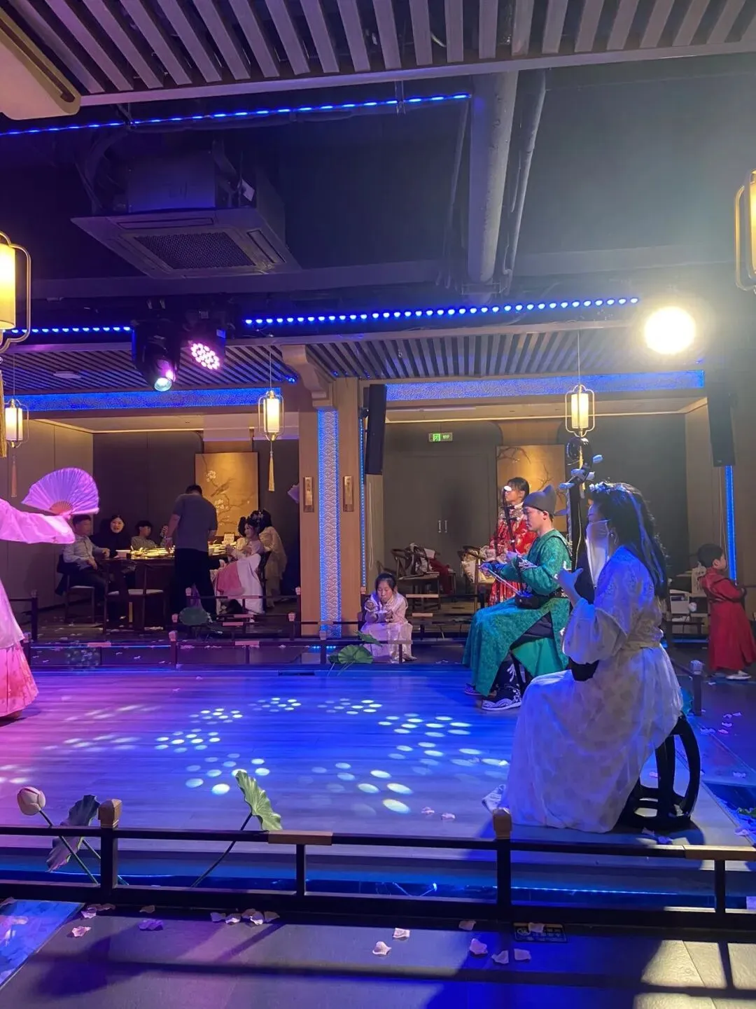 晚上 我们在一个比较有格调的酒店吃饭可以穿汉服听歌舞表演