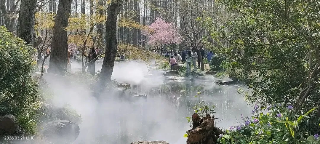 (门口应景的“郁金香”)除了郁金香,还要许多叫不出名字的花花草草,都很美。不仅如此,园子里的小溪流处,很有心地装了喷雾,主打一个仙境。小仙女们很多哦!大家都在摆造型。下面上图了。