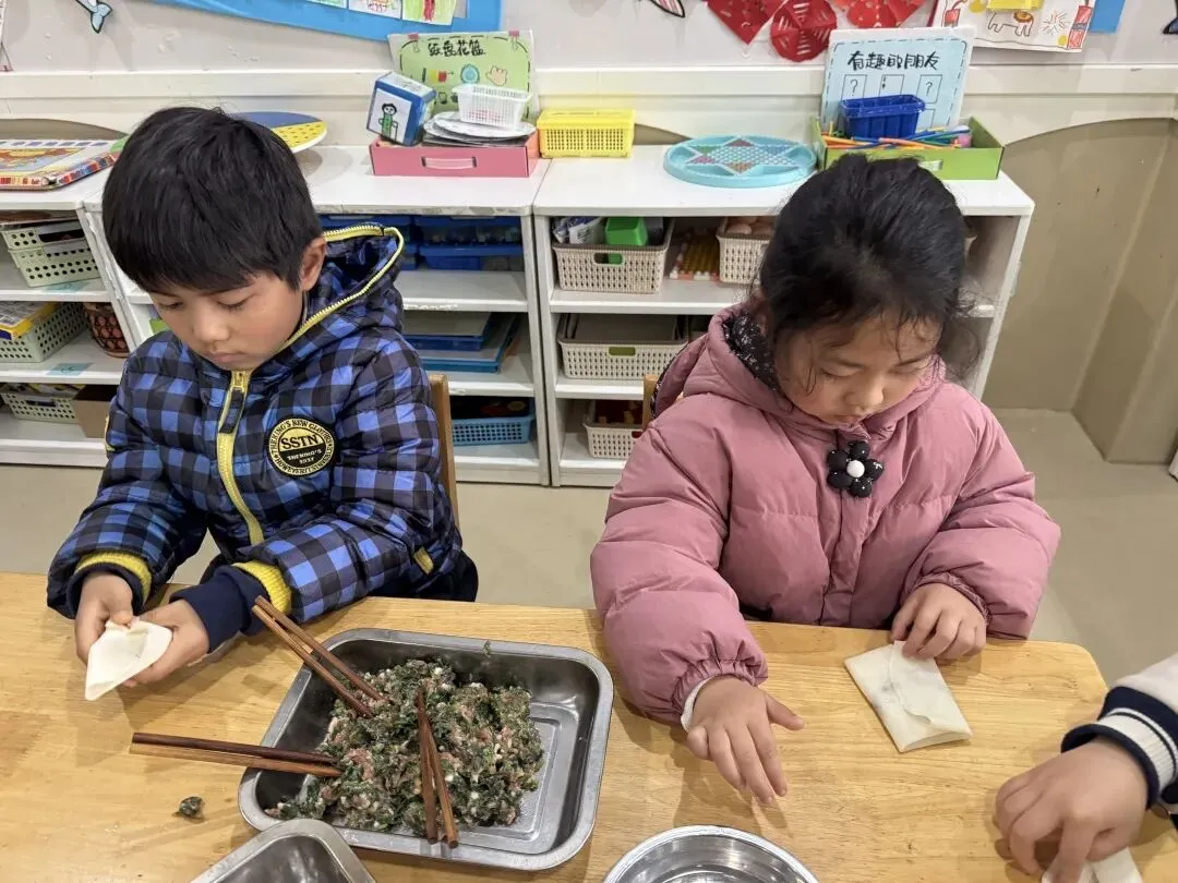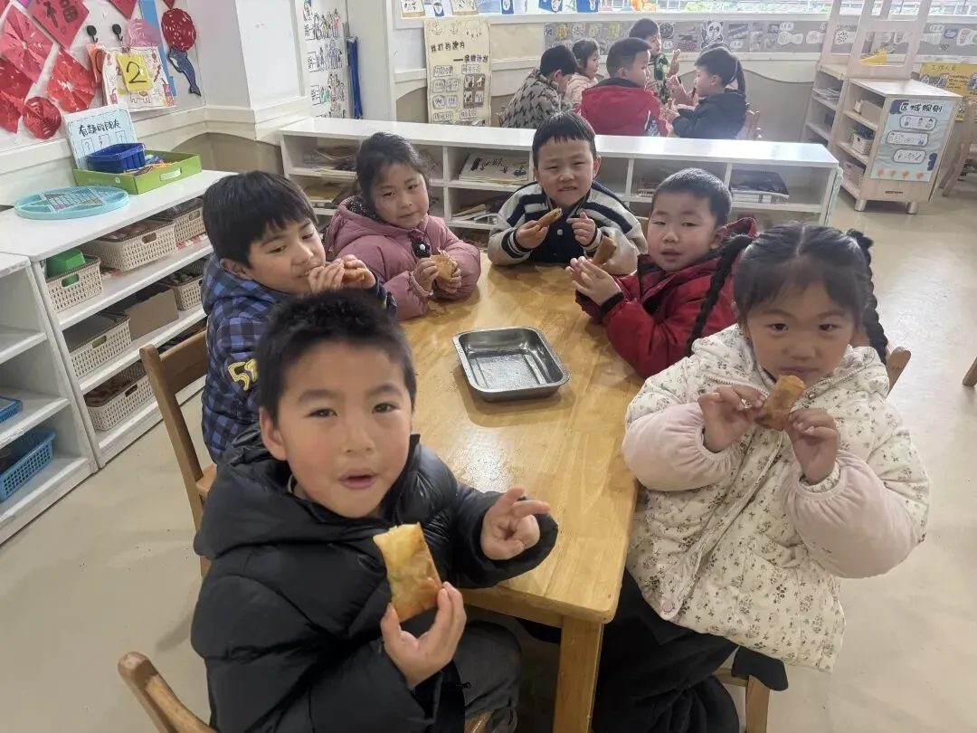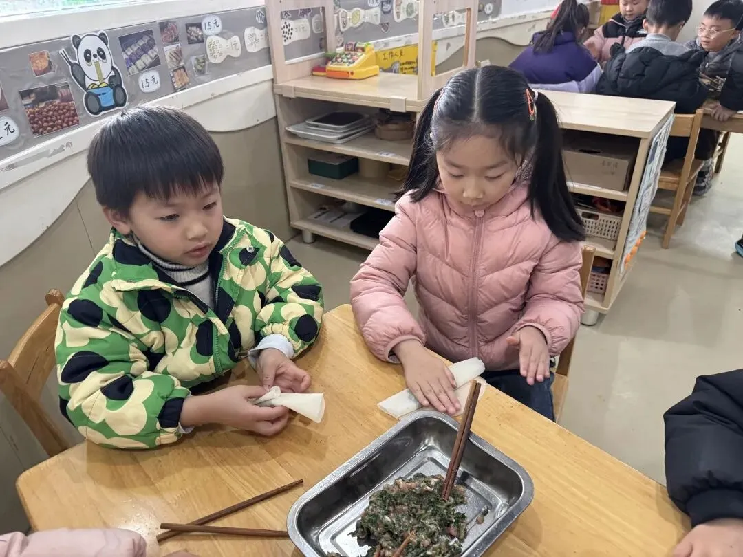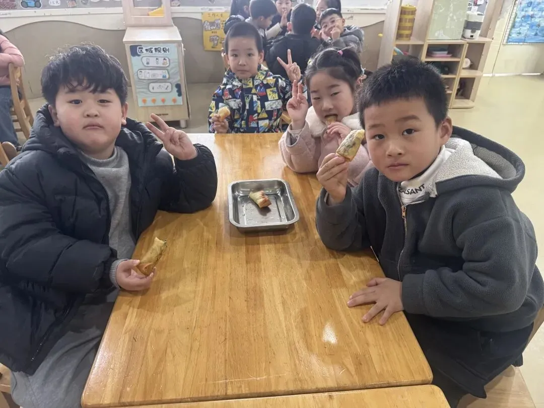 出锅的春卷金黄酥脆,咬上一口,鲜香四溢,满满的春日滋味在舌尖绽放,孩子们在动手制作中品味春分的独特食文化。