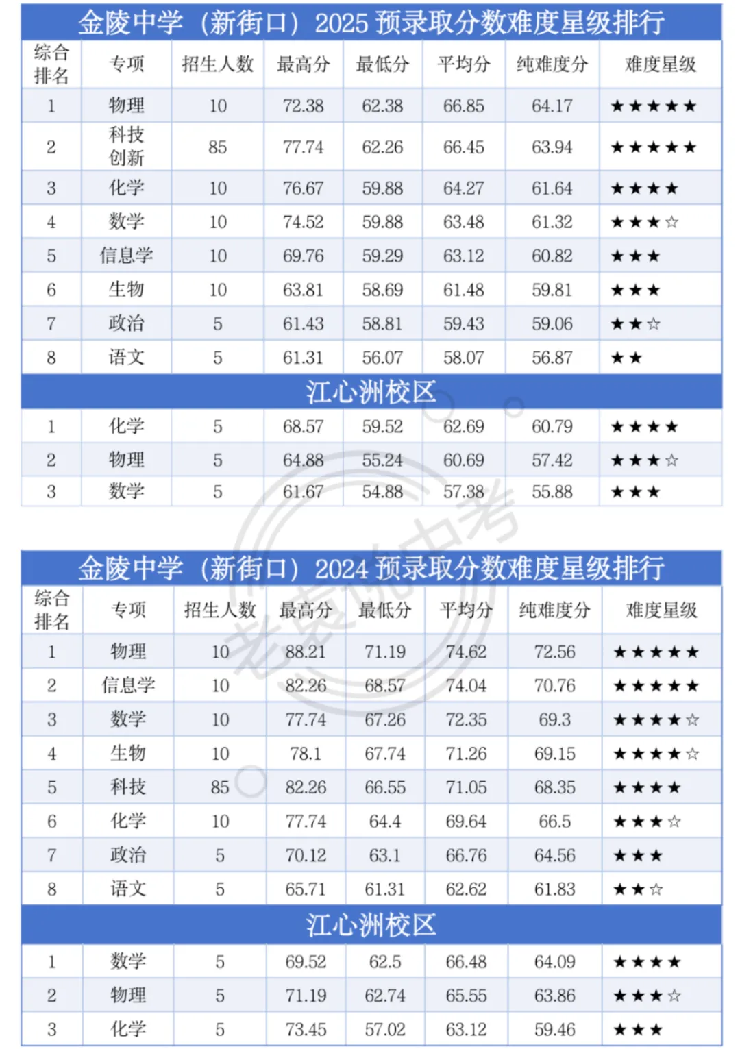 南京中考特长生考试的核心考核内容是什么? 试题难度如何?南京中考特长生考试,核心考核内容均为语文、英语、数学、物理四门统考科目,仅对应细分赛道增设少量本学科附加题。试题整体难度偏高,筛选具备学科潜力、未来能在高考中取得优异成绩的学生,仅极少数头部院校可能少量涉及高中内容。学科、科技特长生差别在哪里?选择哪一门报考更容易上岸?考试核心内容语文、英语、数学、物理四门统考科目,外加占比10%-20%的附加科目。这里给出2025部分特长生预录取分数进行对比参考。(星级越高代表学生整体水平越高)很多南京家长说,现在的中考是千军万马过独木桥,一分就能甩开几百人。