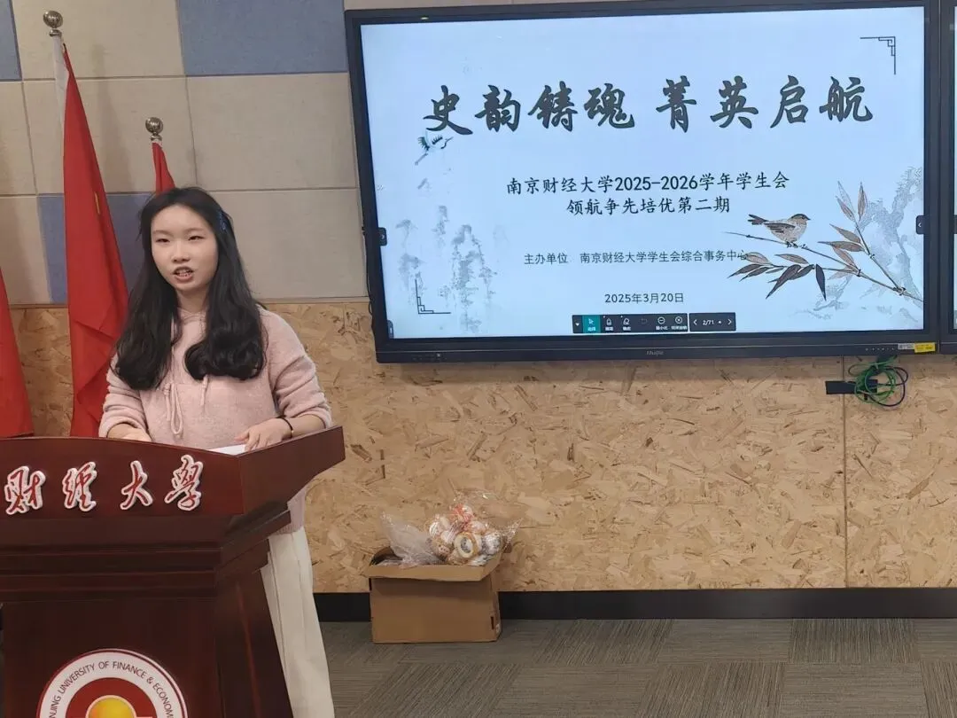 2026年3月20日晚,由校学生会综合事务中心主办的“南京财经大学2025-2026学年学生会领航争先培优第二期”在博文楼101教室举行。本次活动以“史韵铸魂,菁英启航”为主题,旨在通过多元化的互动环节,系统学习南京财经大学的发展历程与办学特色,深入感悟学校的优良传统与文化底蕴,进一步增强校院两级学生会对学校的归属感与认同感,为后续各项工作的开展筑牢思想基础。