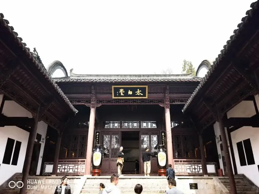 过了池塘转角就是李白纪念馆了,不大,参观的人不少