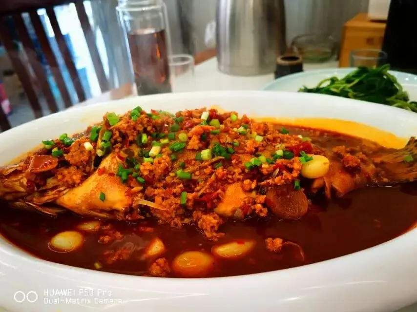 中午在隔壁老街上吃的饭,振华酒楼,臭鳜鱼128元,时蔬马兰头有点贵35元,煮干丝28元