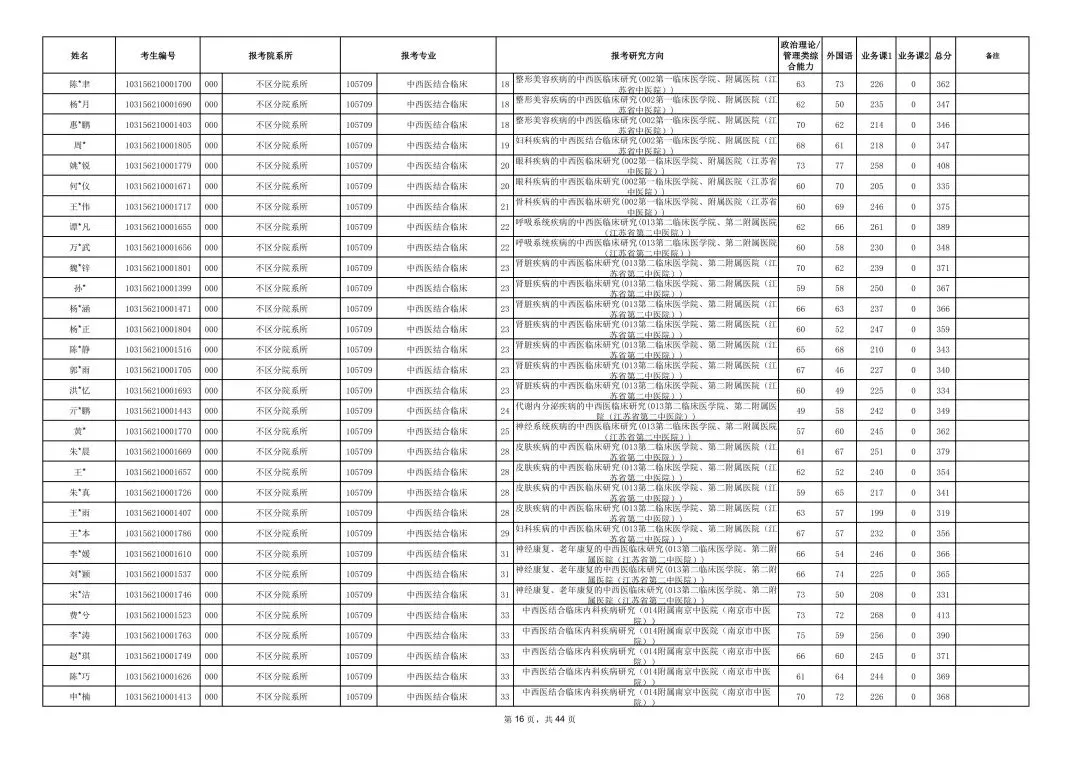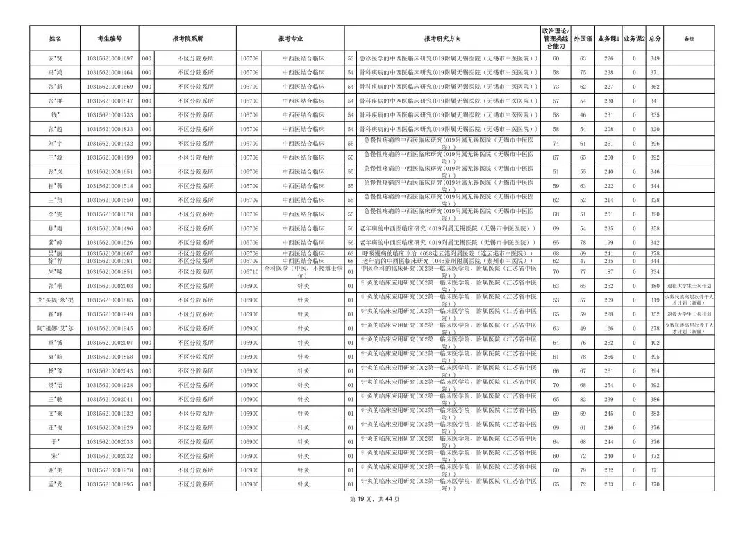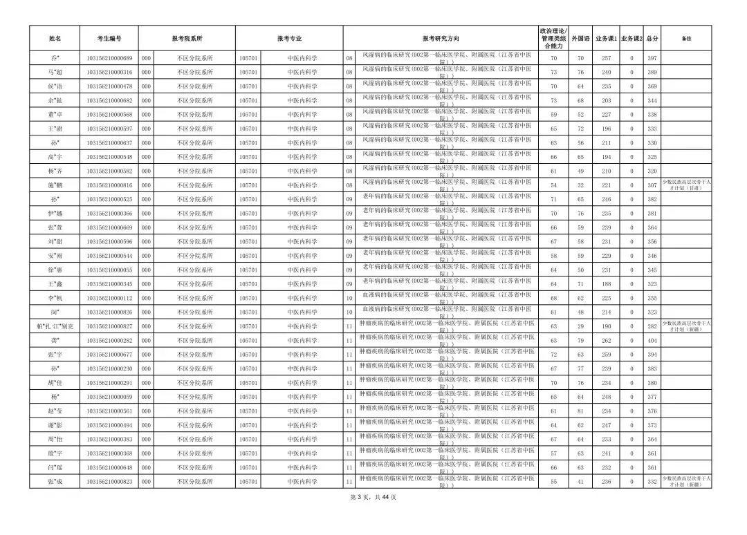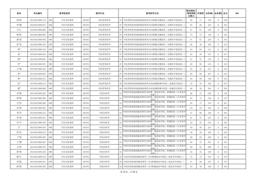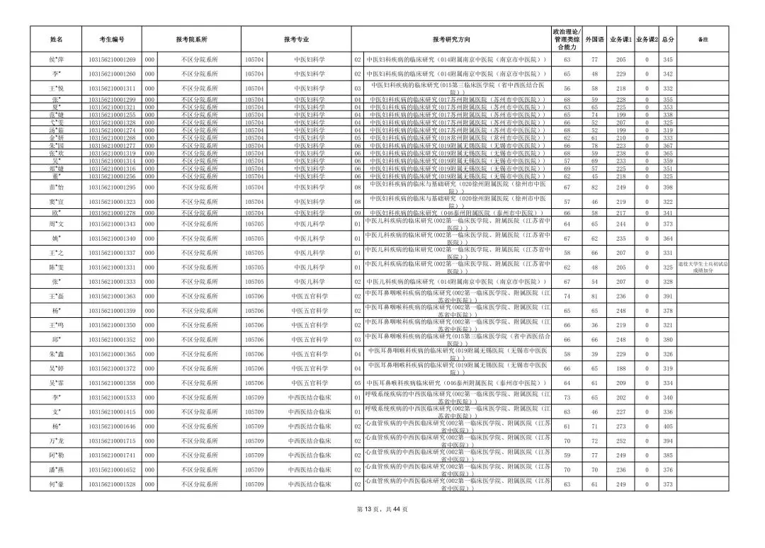 南京中医药大学2026年硕士研究生一志愿复试考生名单