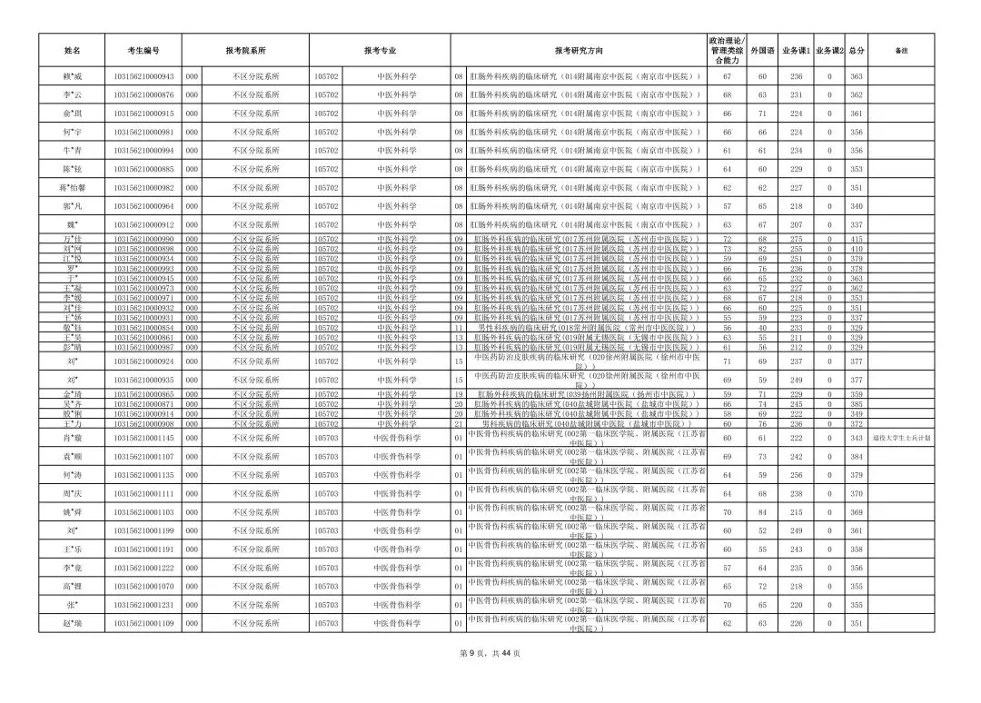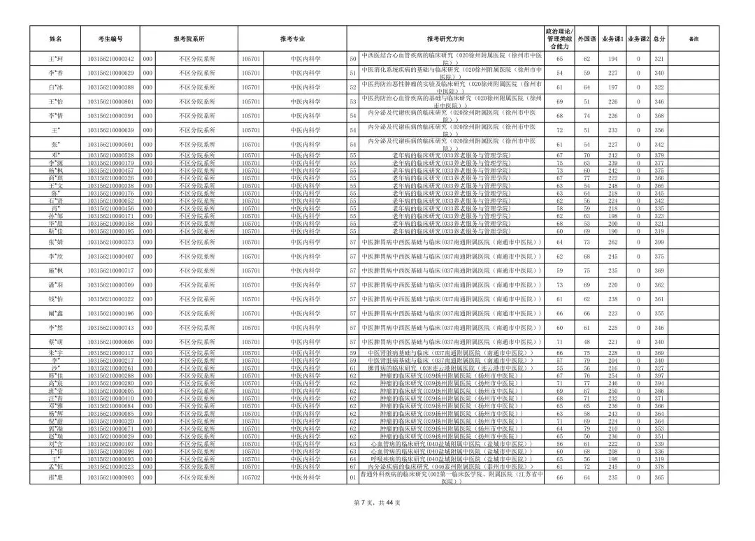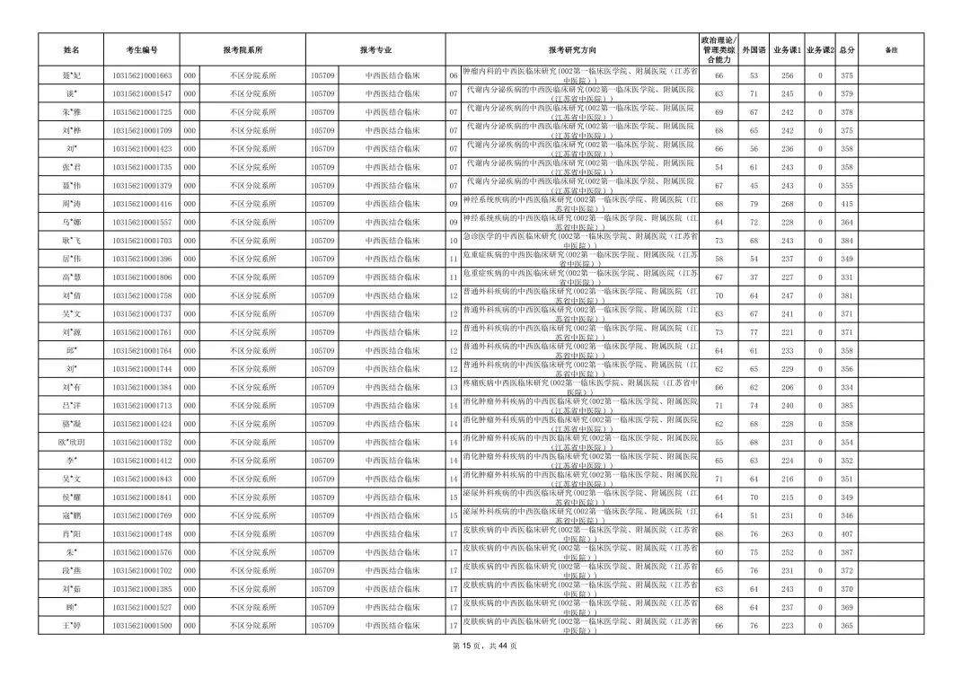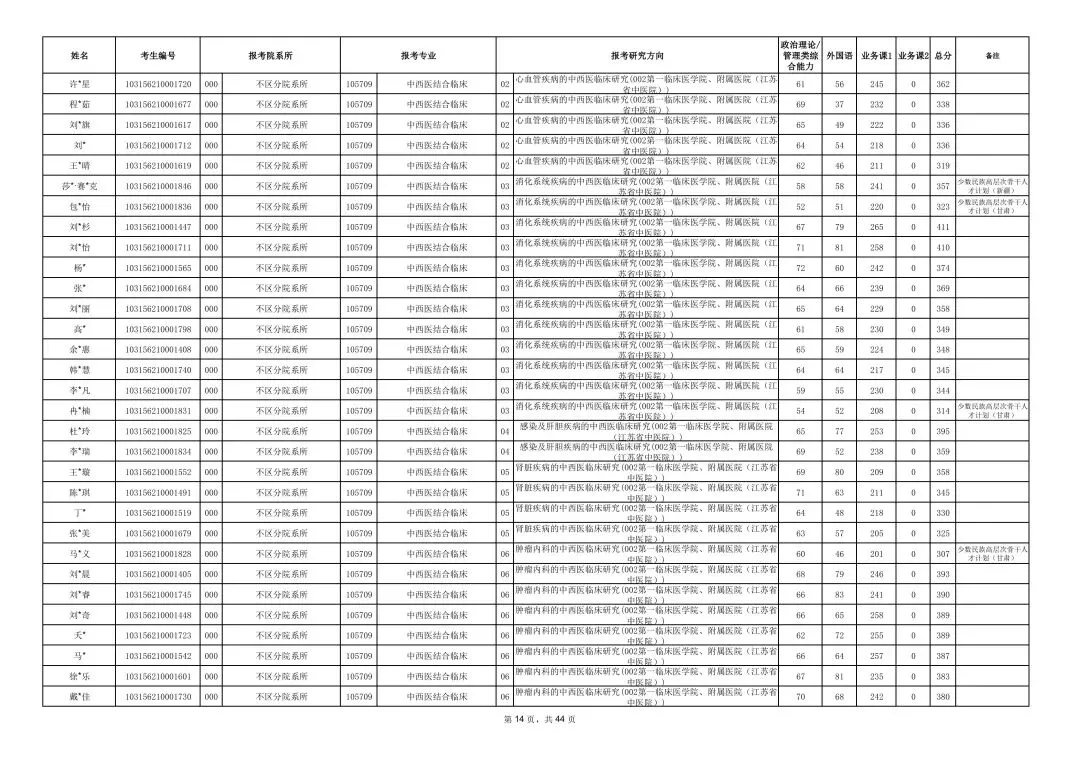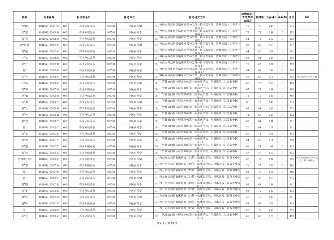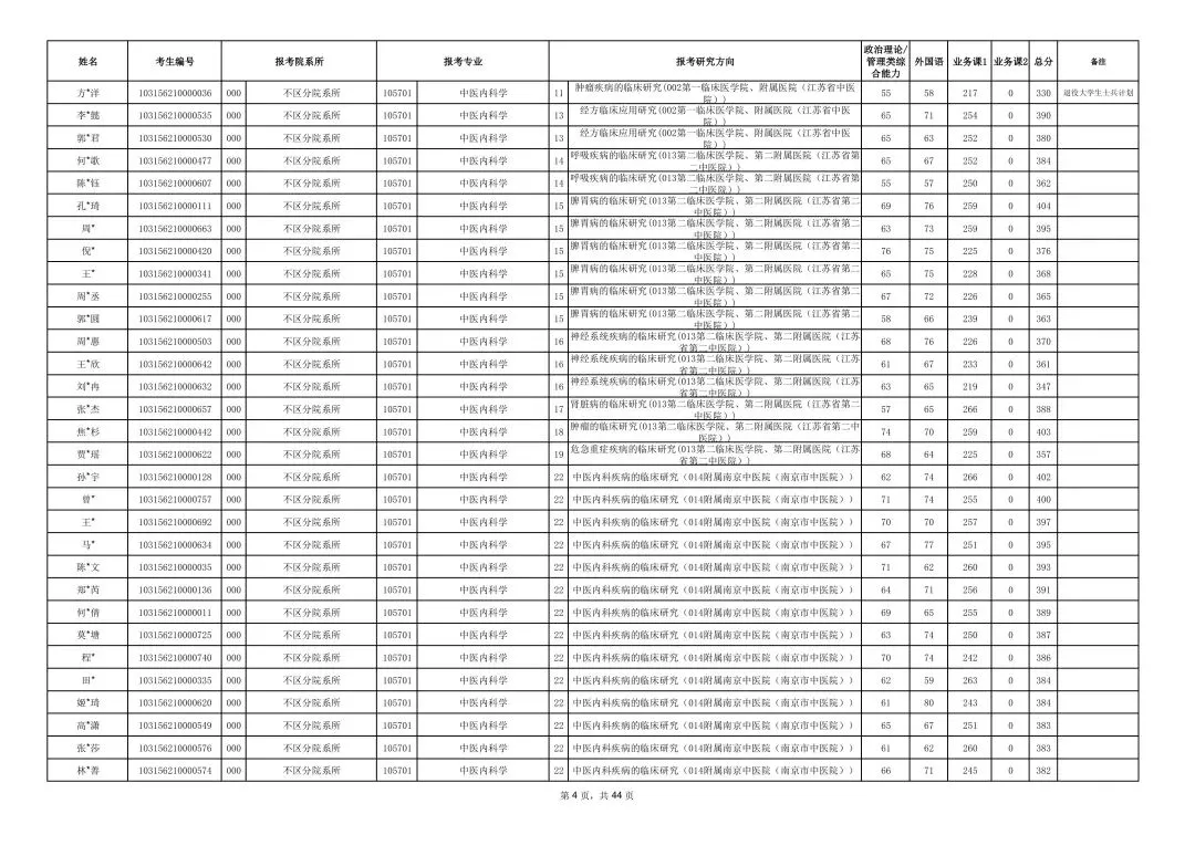 南京中医药大学2026年硕士研究生一志愿复试考生名单