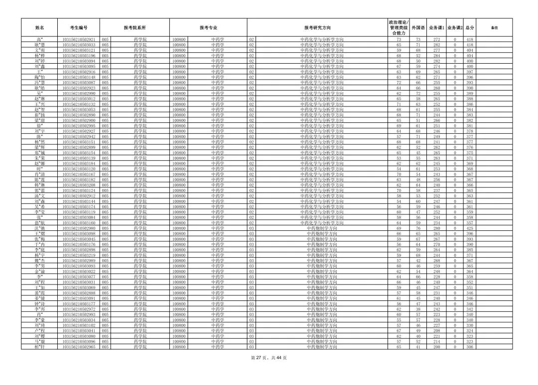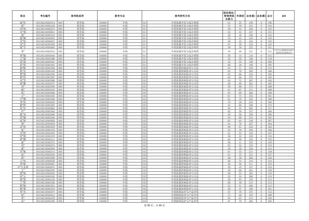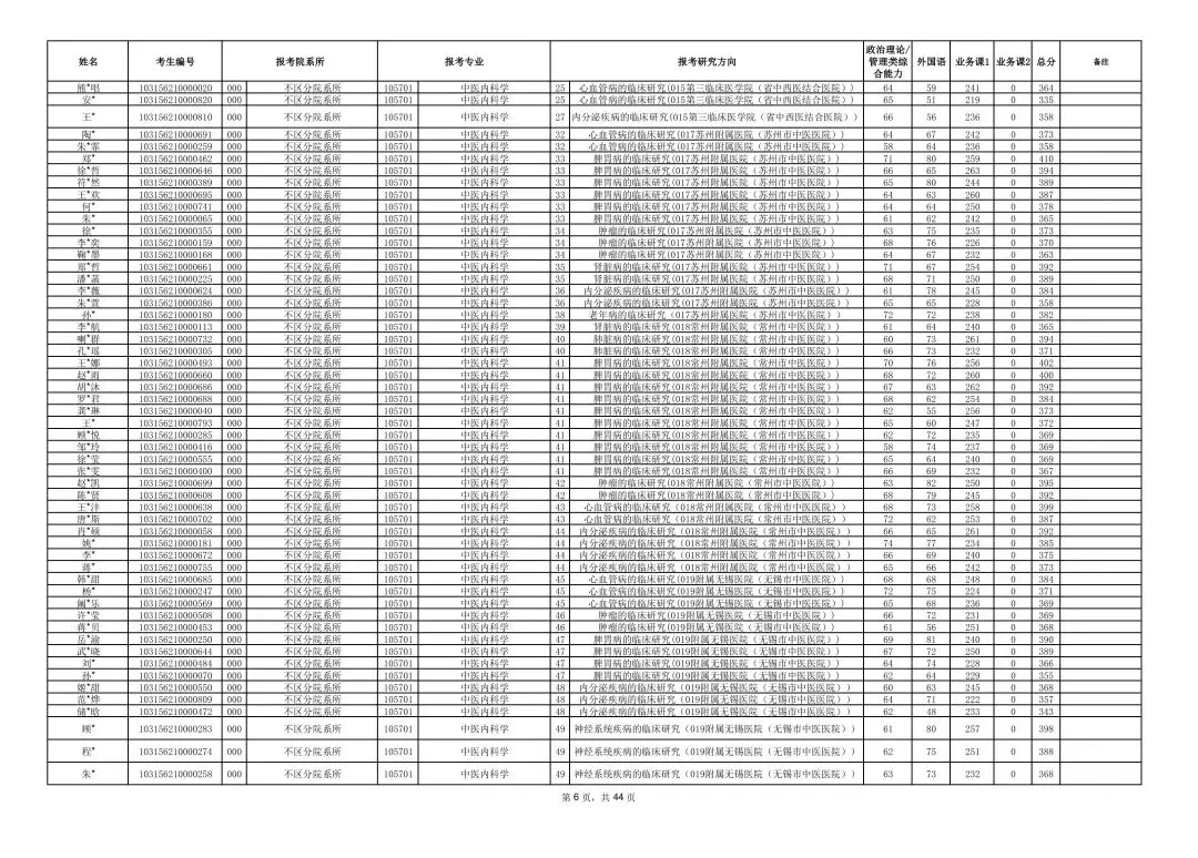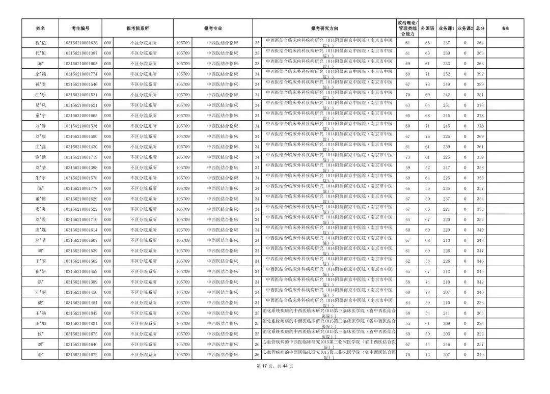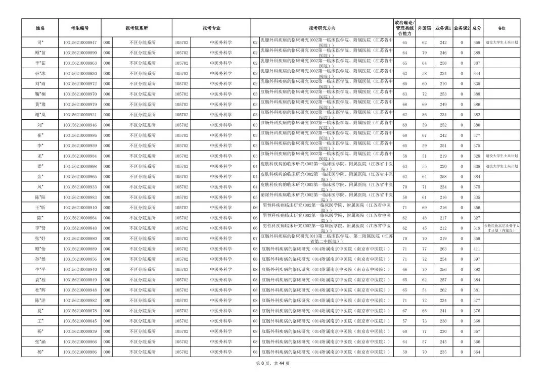 南京中医药大学2026年硕士研究生一志愿复试考生名单