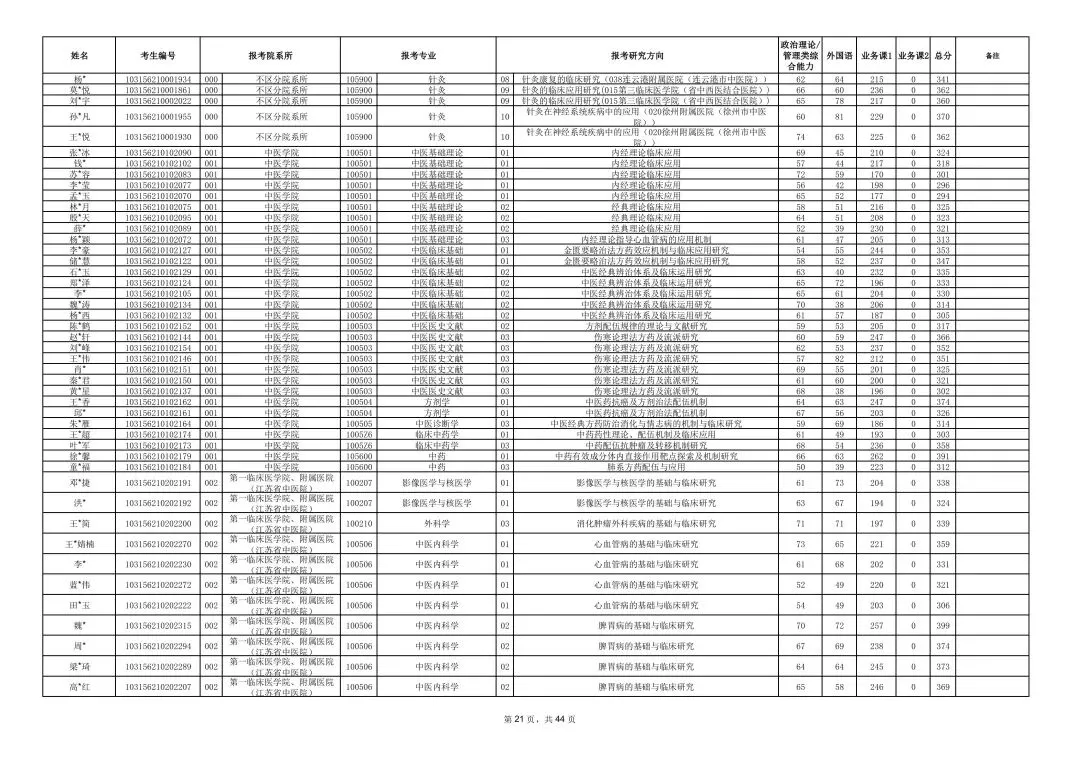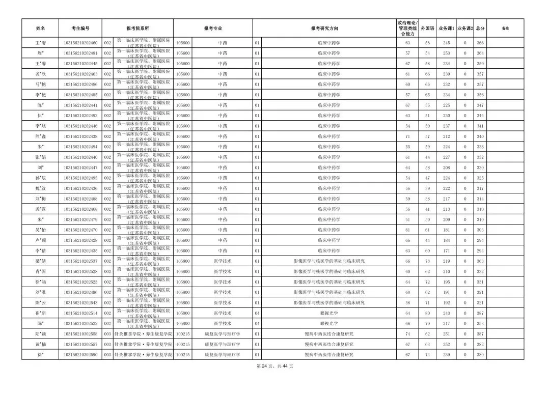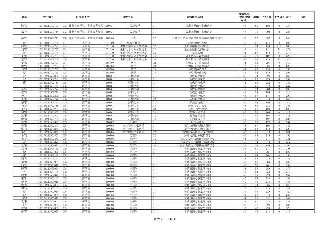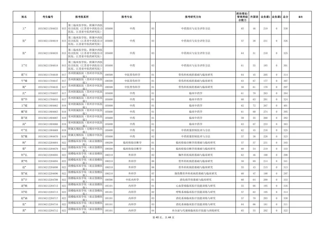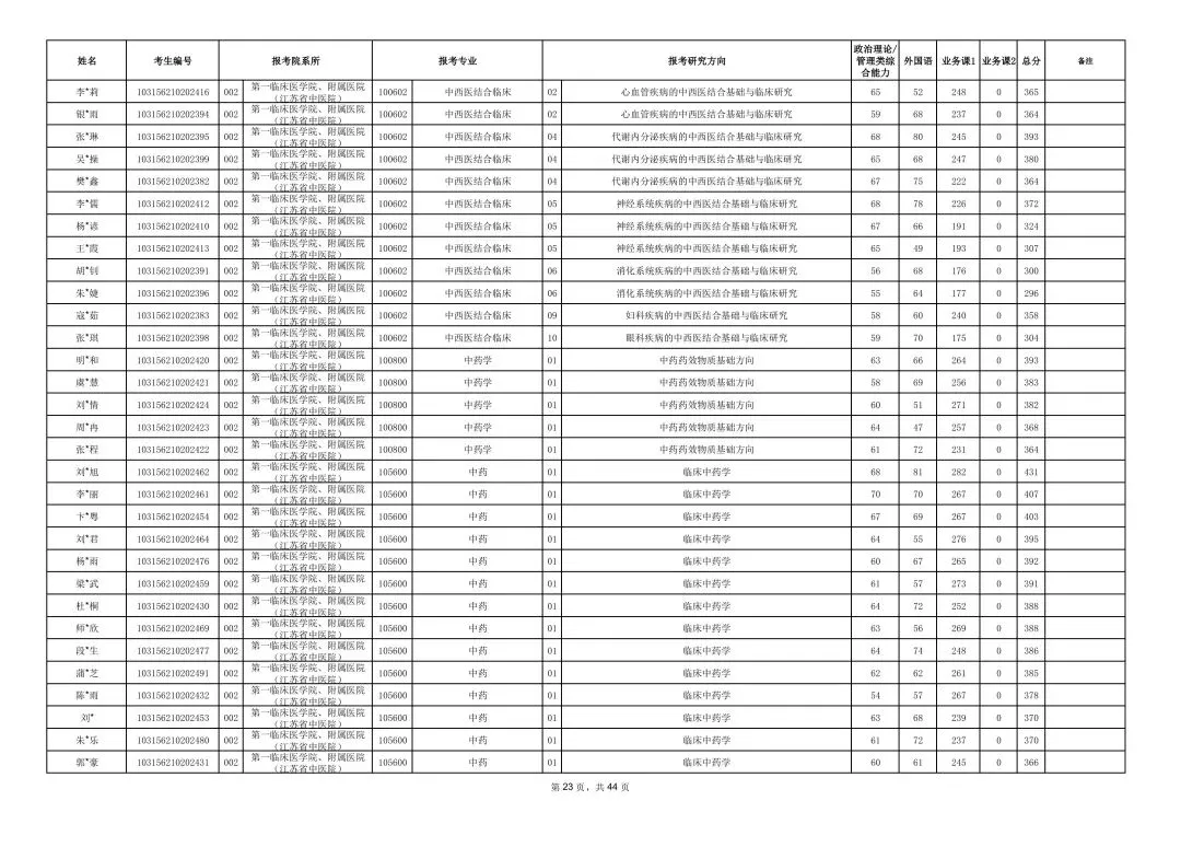 >南京中医药大学2026年硕士研究生一志愿复试考生名单
