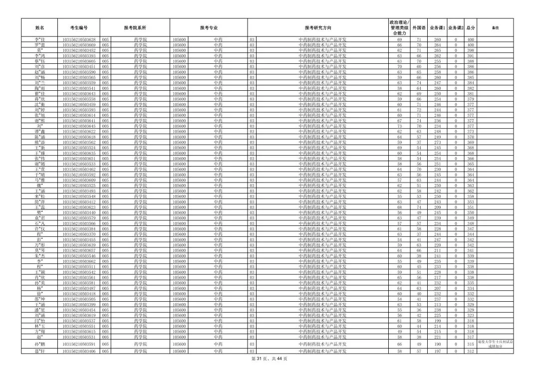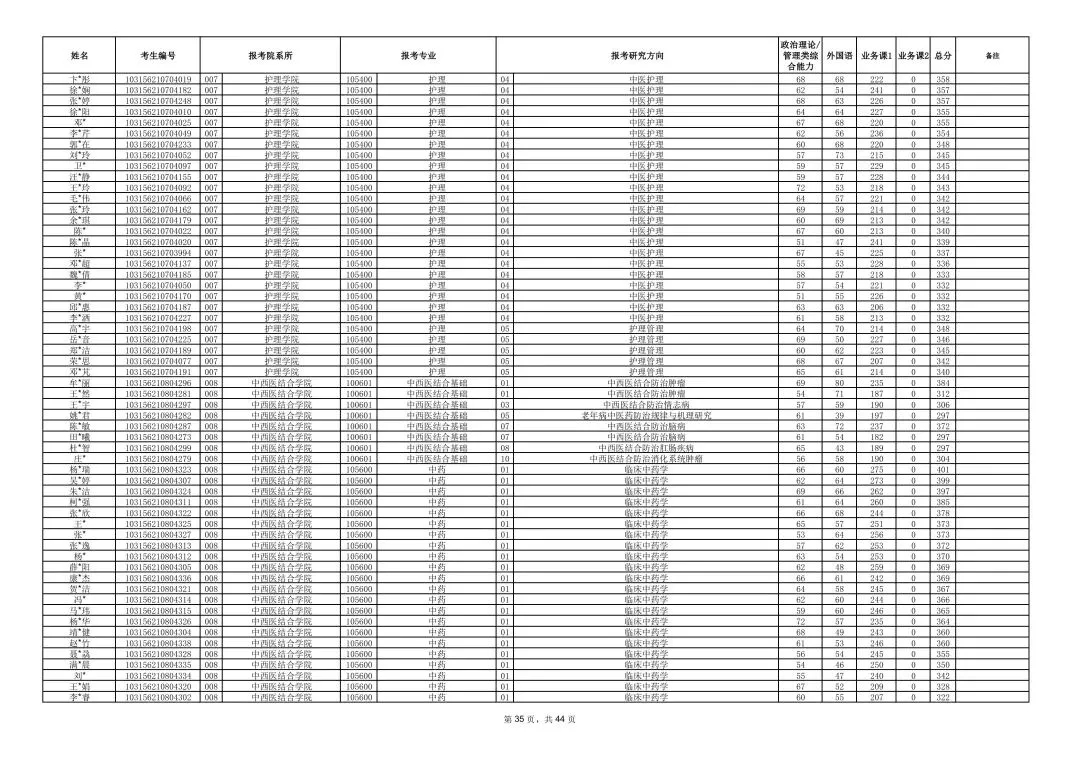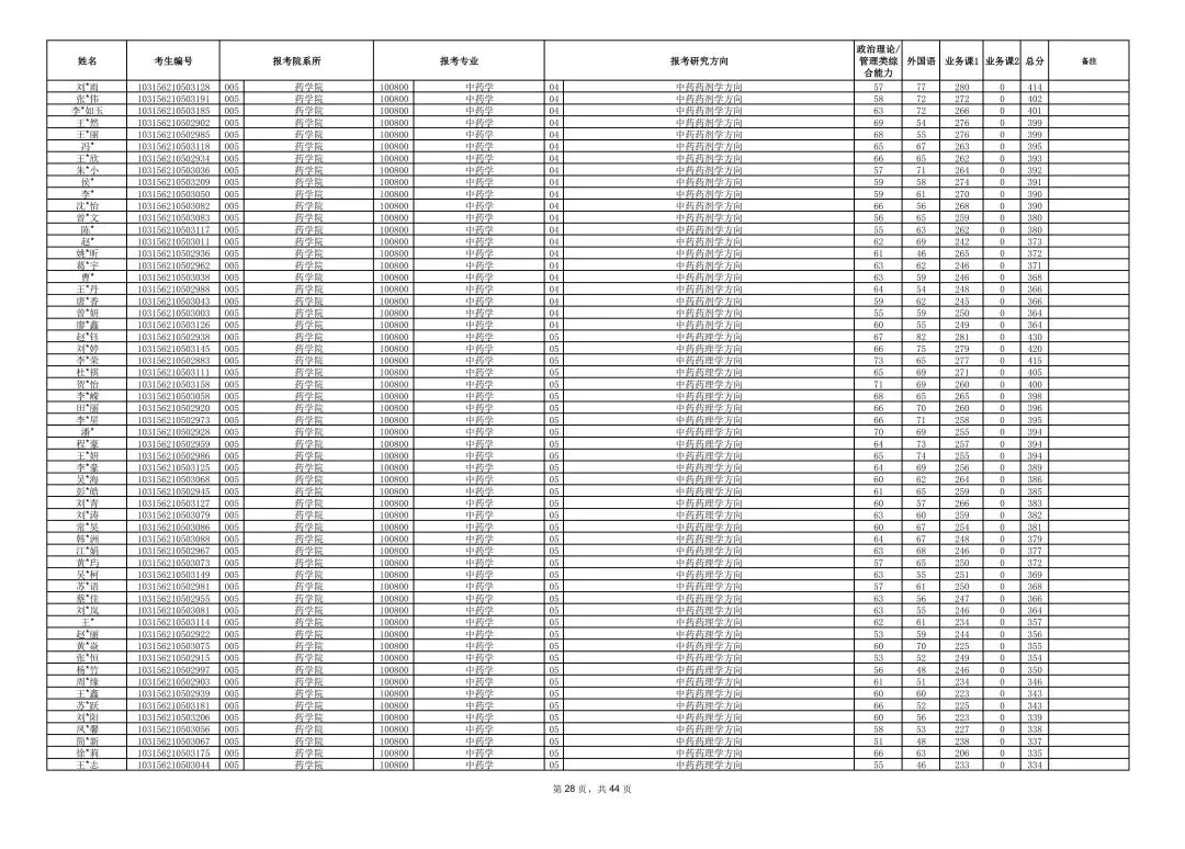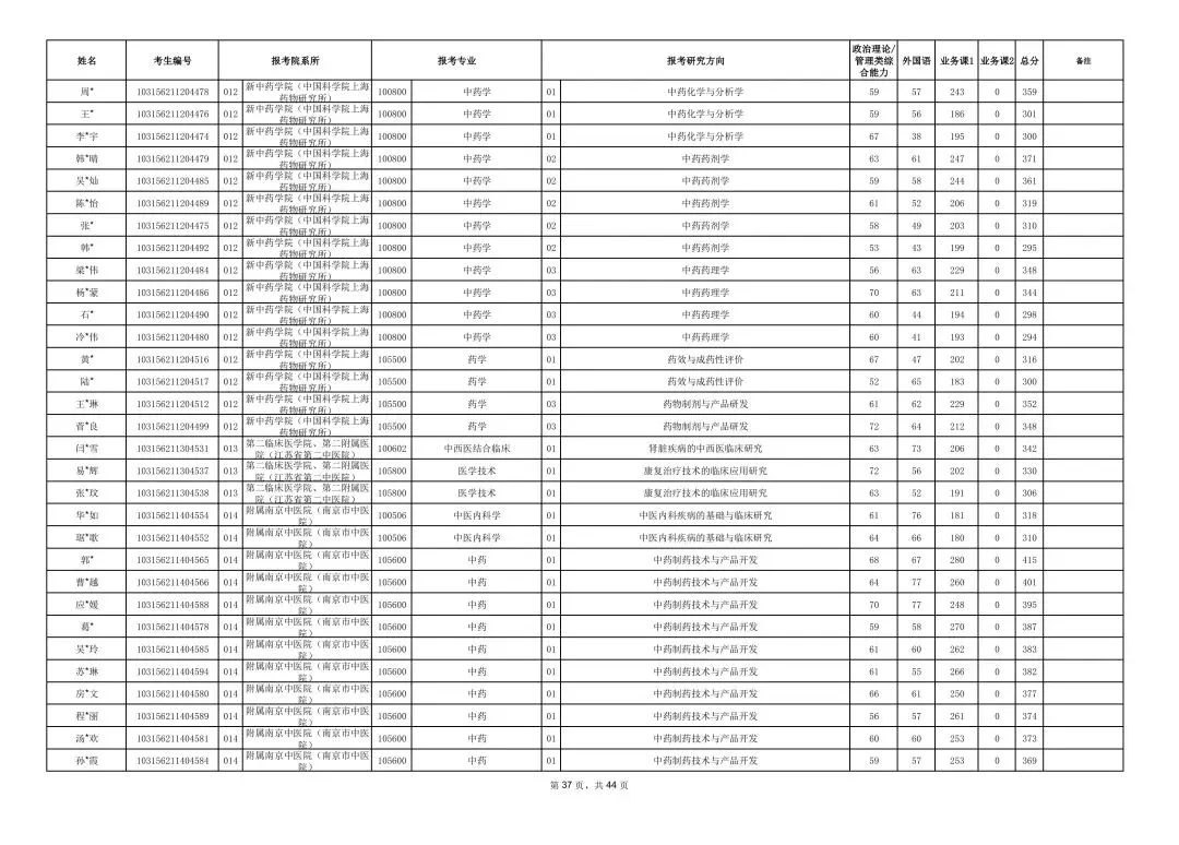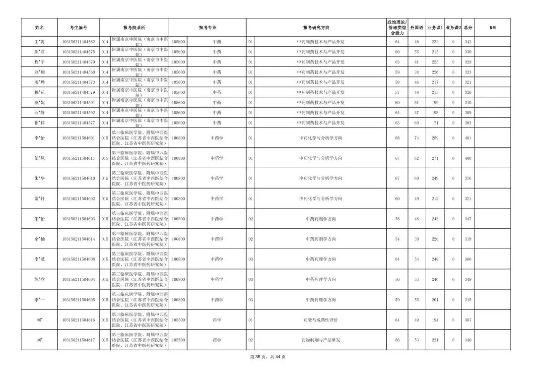 >南京中医药大学2026年硕士研究生一志愿复试考生名单