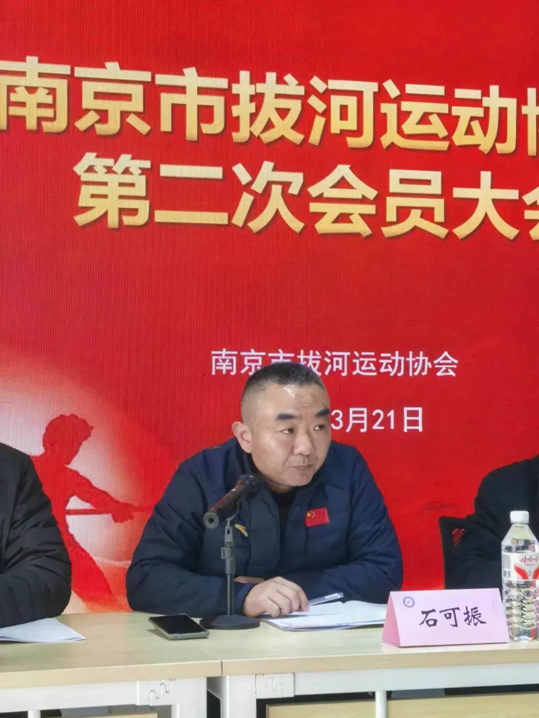 随后,新任会长朱硕发表表态讲话。他对上级部门、全体会员及各界同仁的信任与支持表示衷心感谢,回顾了协会过往的发展历程与成就,并明确了新一届理事会的工作方向。朱硕会长表示,将恪尽职守、务实履职,带领新一届理事会进一步规范协会管理,丰富拔河赛事活动,加强裁判员队伍建设,推动南京拔河运动普及推广,努力打造具有南京特色的拔河体育文化品牌。 最后,石可振科长代表市体育总会讲话。他对南京市拔河运动协会第一届理事会的工作给予充分肯定,对新一届理事会的成立表示热烈祝贺,并对南京拔协未来发展提出殷切的三点期望:一是南京拔协需要加强党建工作,发挥协会党员模范带头作用,为协会各项工作规范化运作提供保证。二是希望南京拔协打造特色赛事,推动南京拔河有序发展,要不断扩大群众基础,推动拔河运动和协会自身良性、可持续性发展。三是以社团文化为抓手,扩大社团影响力。强调:无论是一个企业,还是一个社团,文化都是源源不断的发展动力,组织文化更是协会的精神源泉。希望市拔河协会紧跟当前文化发展形势与要求,充分运用各类传统媒体和新媒体平台,从正能量、主流价值观的角度找准宣传切入点,发挥媒体优势,生动讲好南京拔河故事,让更多人了解拔河、喜爱拔河、参与拔河。向社会展现拔河协会积极健康、昂扬向上的良好形象,为全市拔河事业发展营造良好的社会氛围和坚实的群众基础。 石可振科长最后最后强调:同志们,新征程、新气象。我相信,在市体育局、市体育总会的关心支持下,在广大拔河爱好者的共同努力下,南京拔河运动的发展前景必将更加广阔,拔河事业的未来也必将更加美好! 本次大会的顺利召开,标志着南京市拔河运动协会进入全新发展阶段。新一届理事会将以此次换届为契机,凝心聚力、真抓实干,持续推动南京拔河运动高质量发展,书写南京拔河运动事业新篇章。