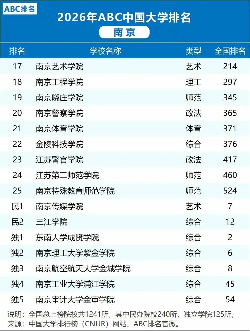 对这份刚刚出炉的2026年南京高校排名有怎样的看法呢?排名结果是否符合自己期望的高低呢?在我心中南京有哪些高校的特色或者成就最值得称道呢?希望大家提出自己的一言半语。