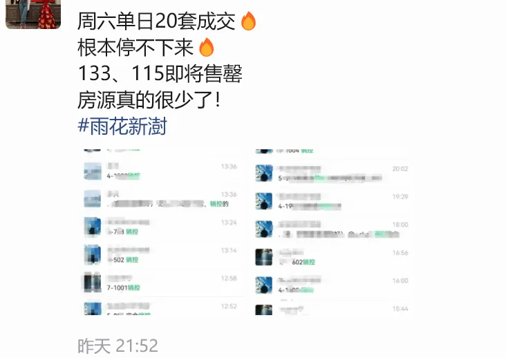 雨花的联发·雨花新澍周六单日成交20套,133、115即将售罄。