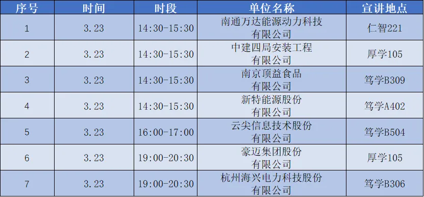 明日宣讲栏目是次日宣讲企业的信息,请同学们根据自身需要,参加企业宣讲会。