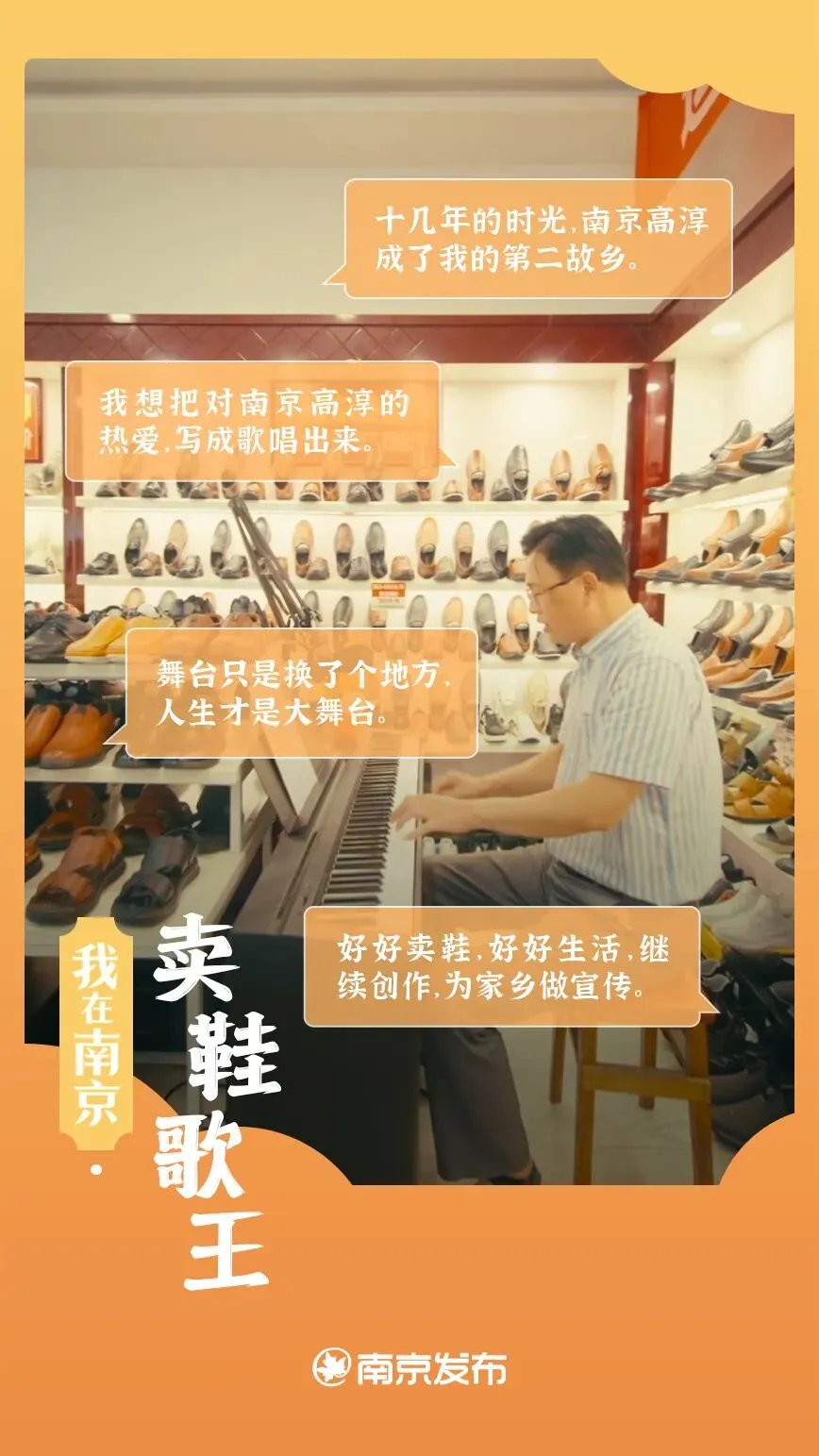 ○日前,在央视《花开九洲》2026春节联欢晚会的舞台上,一位来自南京高淳的歌手深情演唱了《父亲 我记住了》,令人意想不到的是,舞台下,他的日常是淳溪街道中山步行街一家鞋店的老板。