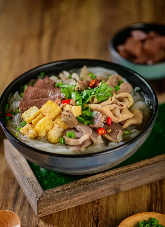 这个传说是不是真的不重要,重要的是这碗汤成了南京人餐桌上的灵魂。鸭血嫩滑如布丁,鸭肠脆爽弹牙,鸭肝绵软入味,粉丝吸饱了用鸭架慢炖数小时的老鸭汤,鲜香直钻鼻尖。