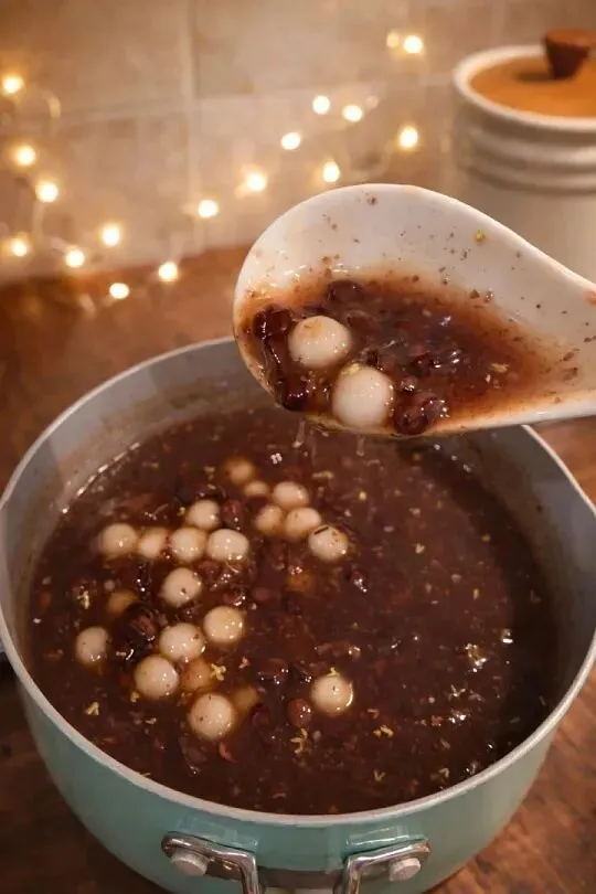 赤豆元宵的妙处,在于“三重奏”的味觉交响。红小豆浸足12小时,文火慢熬2小时至表皮半绽,部分店家还会压碎豆粒,让沙感与颗粒感并存。酒酿是糯米蒸熟拌曲后,在陶瓮中发酵36小时,酸香渗入汤底。